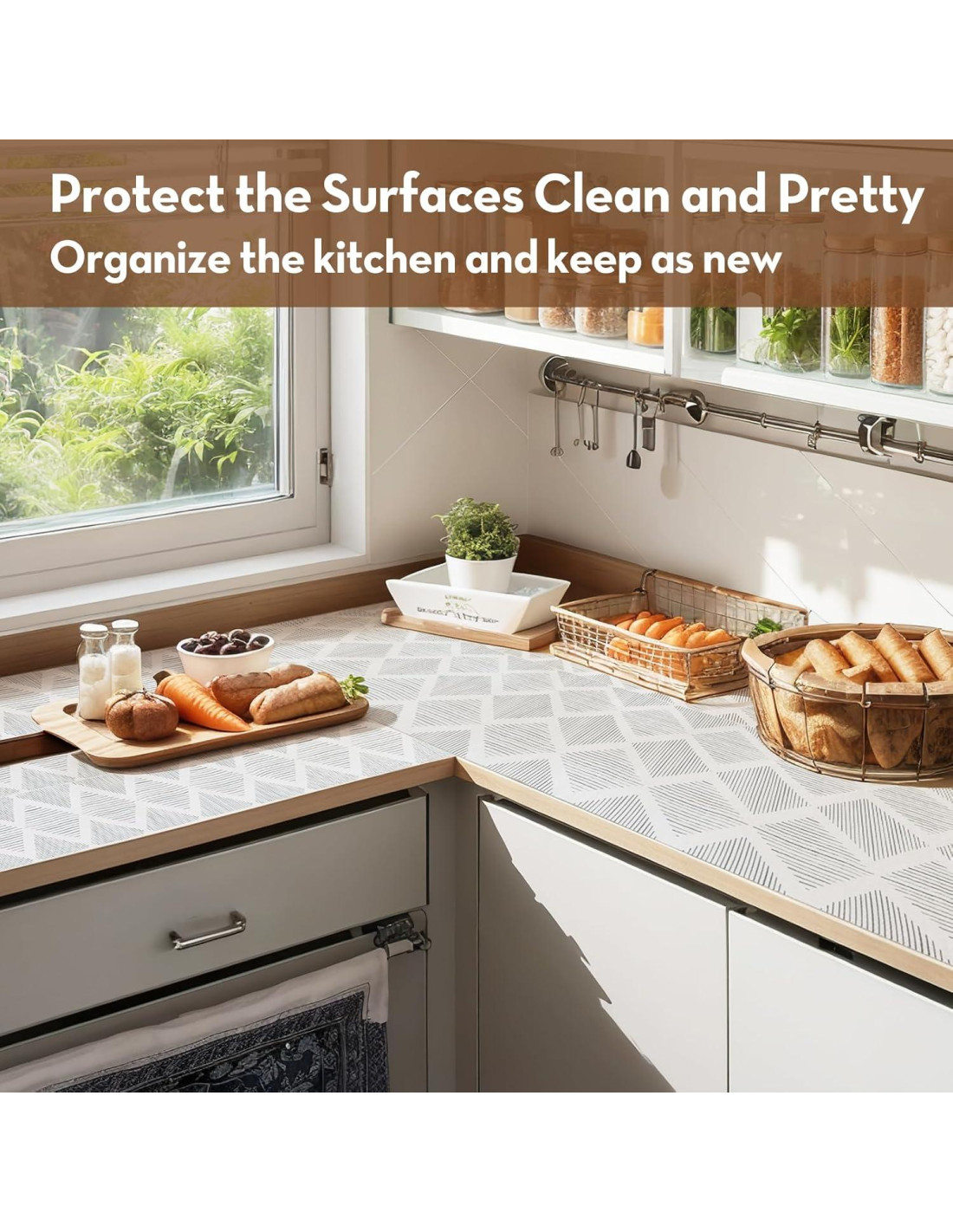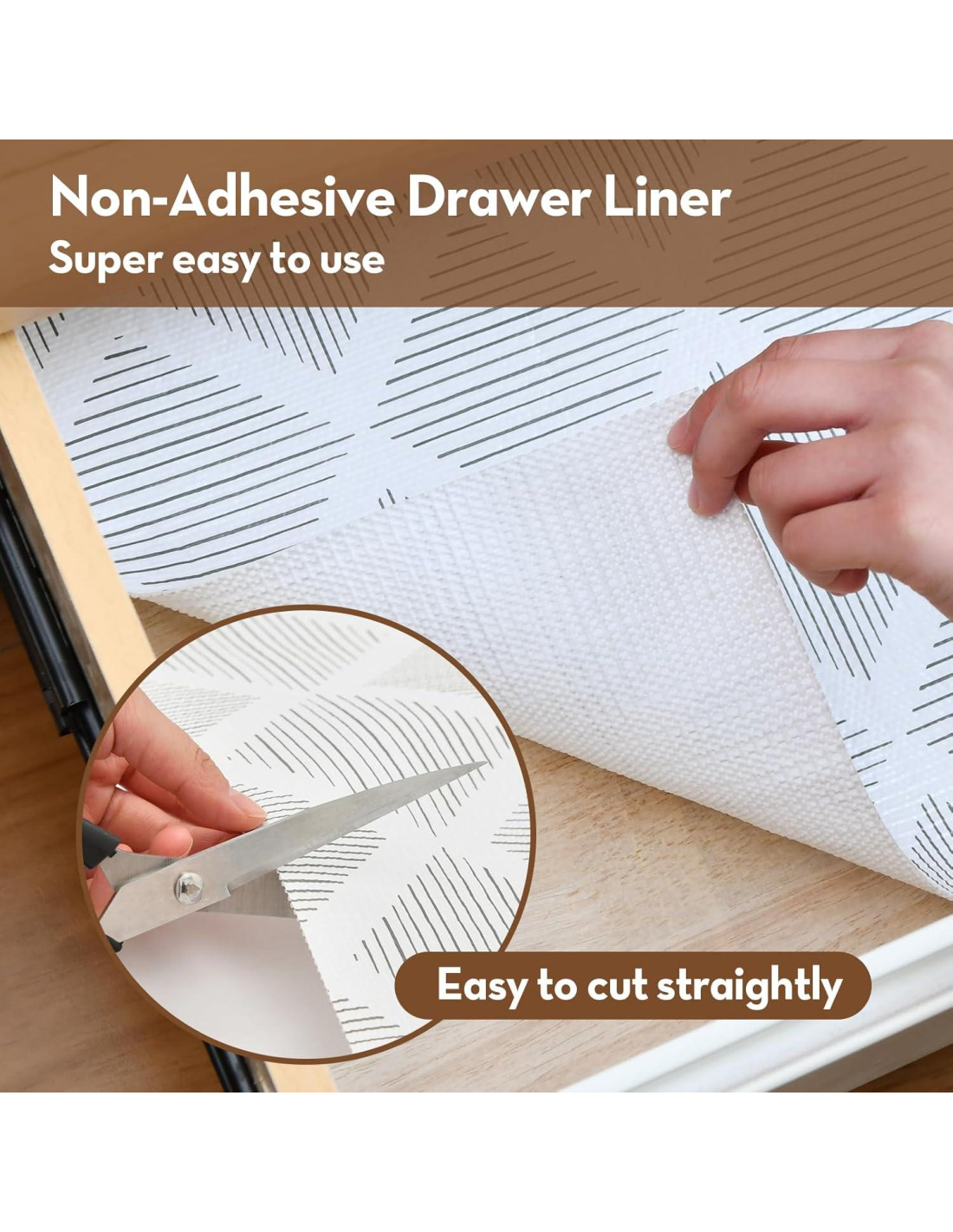 - FÁCIL DE USAR: Nuestros forros de gabinete son fáciles de cortar y se ajustan perfectamente a cualquier cajón o estante. Su diseño de material único los mantiene seguros en su lugar sin adhesivos, así que nunca más tendrás que lidiar con residuos pegajosos en los estantes, por lo que este papel de contacto es ideal para propietarios y inquilinos por igual