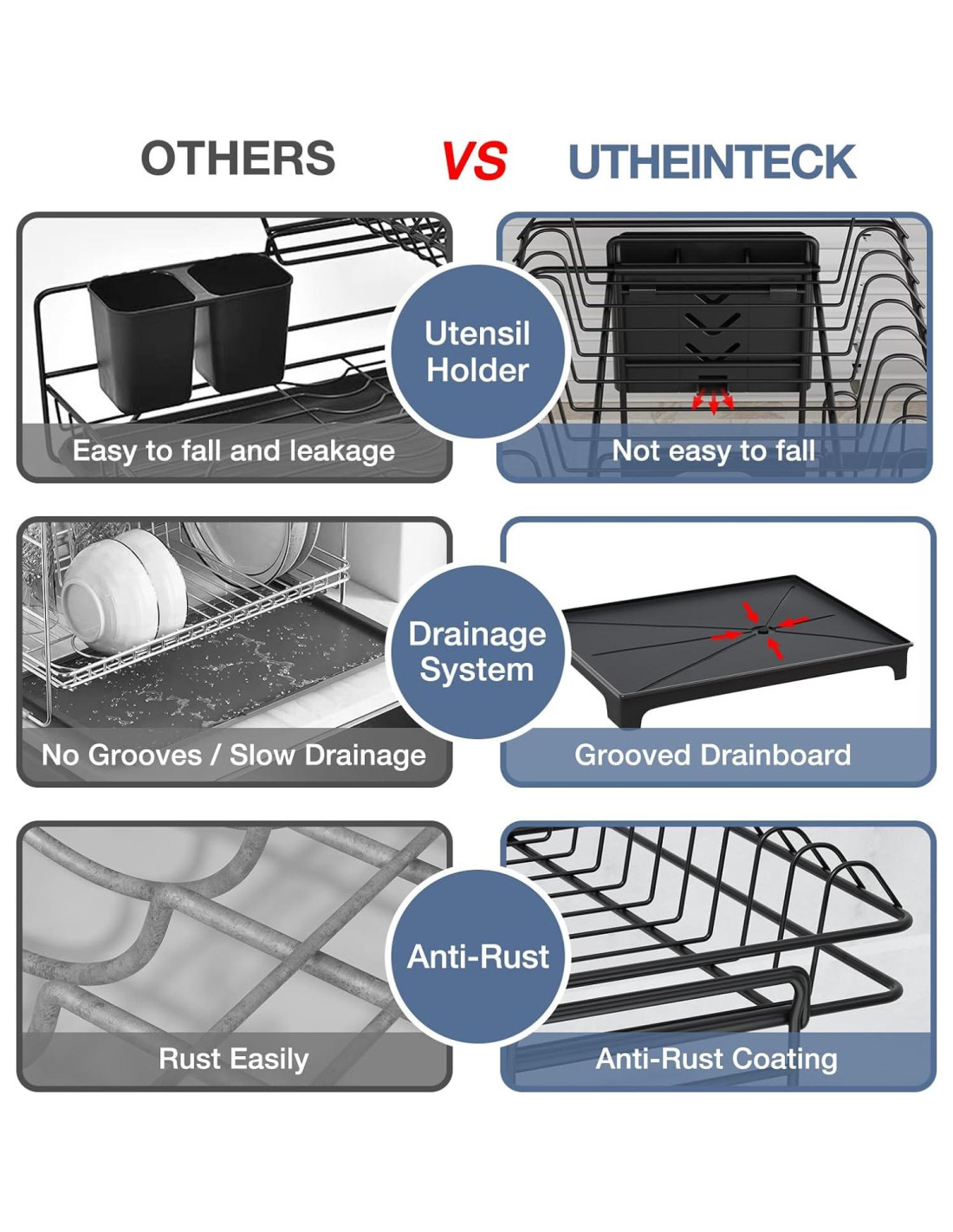 - Regalo Perfecto para el Hogar para Familias: El escurridor de platos de 2 niveles Utheinteck es un artículo imprescindible para la encimera de cocina y un regalo perfecto para la familia o tus amigos para el Día de la Madre, Día del Padre, Acción de Gracias, cumpleaños o Navidad. No dudes en contactarnos si tienes algún problema con nuestro escurridor de platos, te proporcionaremos una solución satisfactoria.