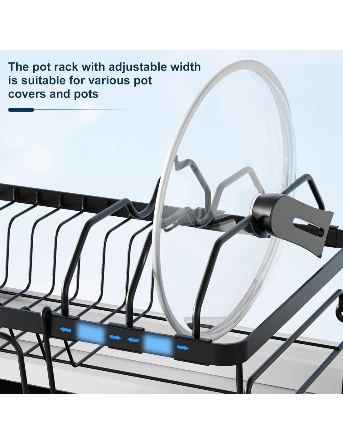 - [Diseño Innovador de Estante para Ollas] A diferencia de otros estantes para platos, nuestro estante para secar cuenta con tres estantes para ollas ajustables en ancho. Esto le permite organizar fácilmente ollas, sartenes e incluso bandejas para hornear de varios tamaños, proporcionando máxima versatilidad y funcionalidad para su cocina.