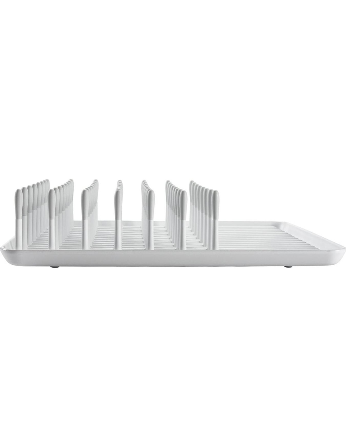 Mantén tus platos seguros y en posición vertical con el OXO Drying Rack. El Drying Rack acomoda platos, vasos, tazas y más. Las costillas elevadas en la parte inferior de la bandeja aseguran que los artículos no se queden en un charco de agua, manteniéndolos limpios, sanitarios y secos. El espacio adicional en la parte frontal del Rack es útil para piezas pequeñas. Las esquinas de la bandeja están optimizadas para verter fácilmente el exceso de agua, y los pies elevados antideslizantes en la parte inferior de la bandeja facilitan su levantamiento.