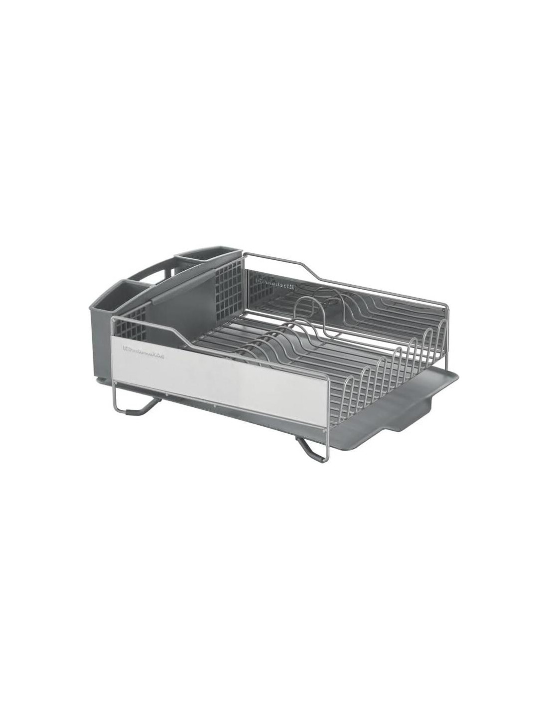 El Escurridor de Platos de Tamaño Completo KitchenAid ofrece la solución perfecta para secar al aire rápidamente una variedad de utensilios de cocina. Con un diseño espacioso, puede sostener platos, tazas, vasos, cuencos, cubiertos, ollas, sartenes y más. Este escurridor cuenta con un caddy para cubiertos, un escurridor de platos y una bandeja de drenaje, y se puede ensamblar sin esfuerzo sin herramientas. Las patas suaves y antideslizantes en la parte inferior lo mantienen en su lugar sin rayar las superficies. Los alambres de acero recubiertos de satén y resistentes a la corrosión mantienen los artículos seguros y permiten el flujo de aire para secar los platos de manera rápida y eficiente. Altamente duradero, este escurridor de larga duración soporta el uso diario. La bandeja de drenaje angulada dirige el agua directamente al fregadero sin acumularse, permitiendo un drenaje suave y manteniendo las encimeras secas. Además, es removible para una fácil limpieza. El caddy cuenta con un asa incorporada y compartimentos ajustables para mantener los artículos separados y fáciles de encontrar. También se separa del escurridor para una fácil descarga en cajones y armarios. Solo lavar a mano. Garantía limitada de por vida.