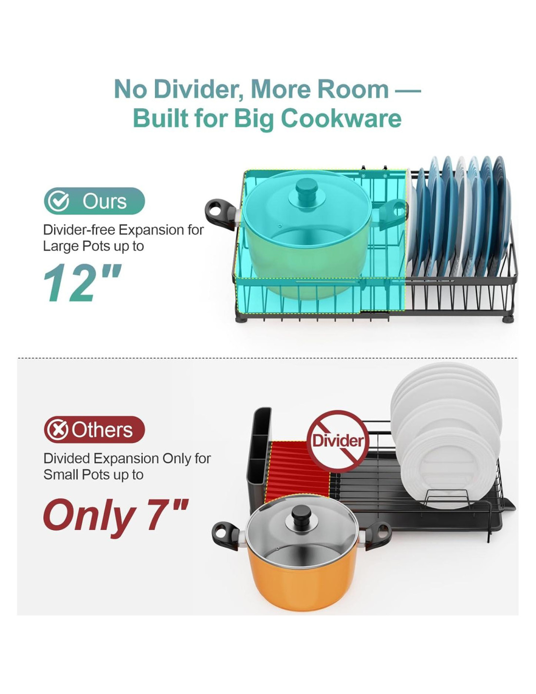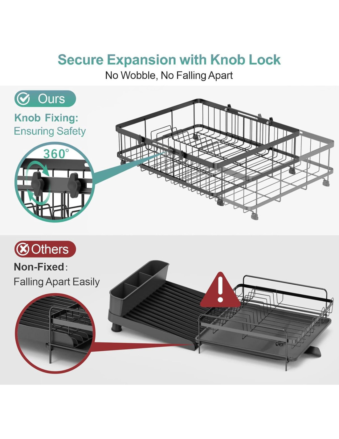 - Diseño Expandible que se Ajusta Perfectamente a Cualquier Encimera: No más apretujando tu escurridor en espacios limitados. Con un marco metálico extensible inteligente, este escurridor de platos se ajusta convenientemente de 16.5" a 21.3", proporcionando un ajuste personalizado para cualquier tamaño de encimera de cocina. Ya sea que tengas una cocina de apartamento compacta o encimeras expansivas, disfruta de un espacio de secado versátil adaptado solo para ti.