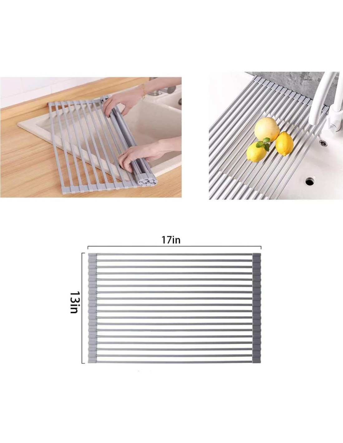 - Herramienta de Cocina que Ahorra Espacio: Este estante de drenaje sobre el fregadero está bien hecho y es fácil de almacenar. Se puede enrollar y guardar rápidamente en un cajón cuando no está en uso. Funciona muy bien y mantiene el área del fregadero de la cocina ordenada, saludable, moderna y con un diseño de moda, resistente al aceite y antideslizante.