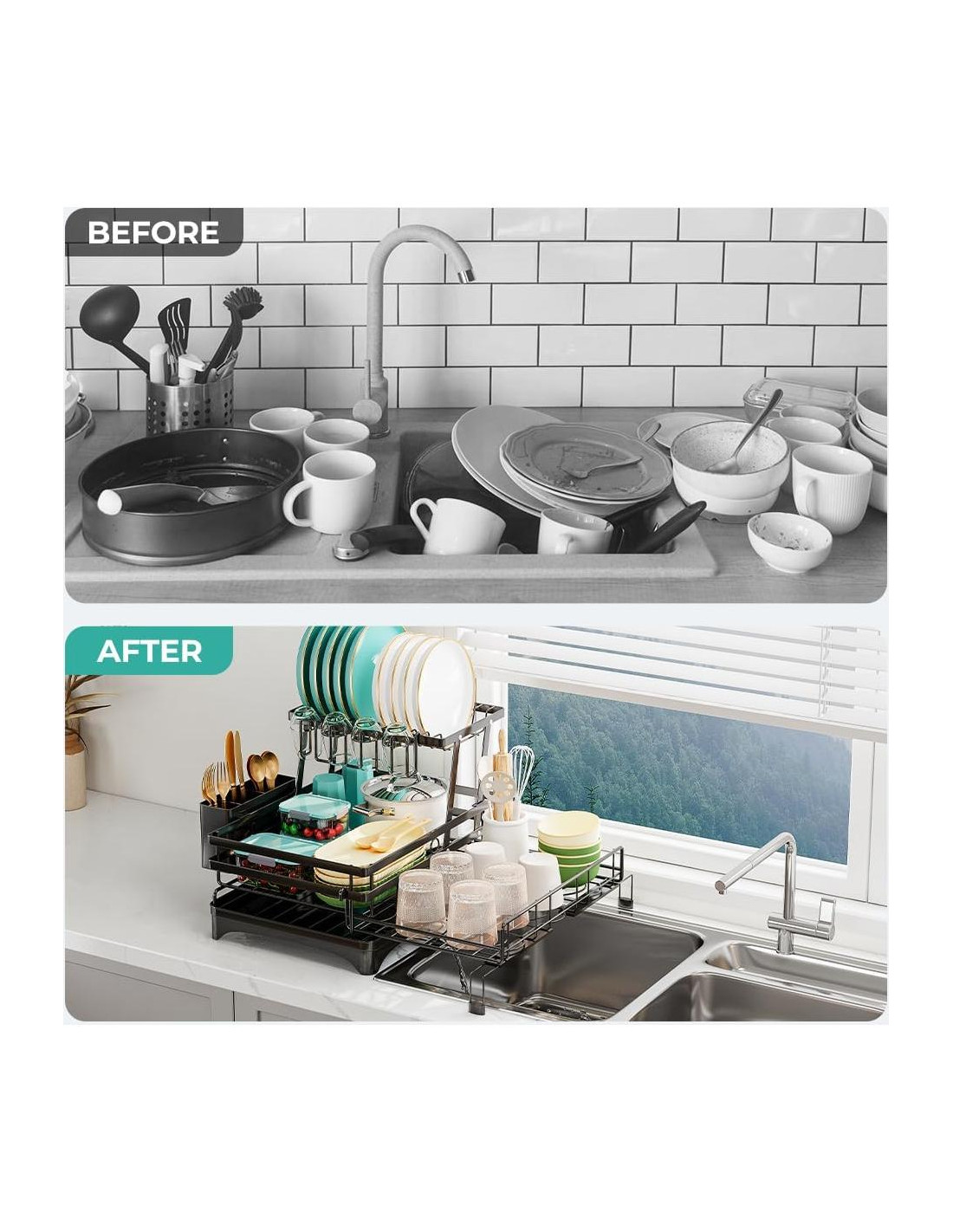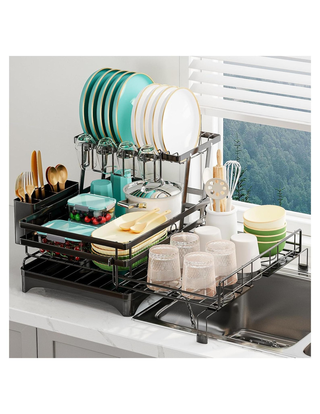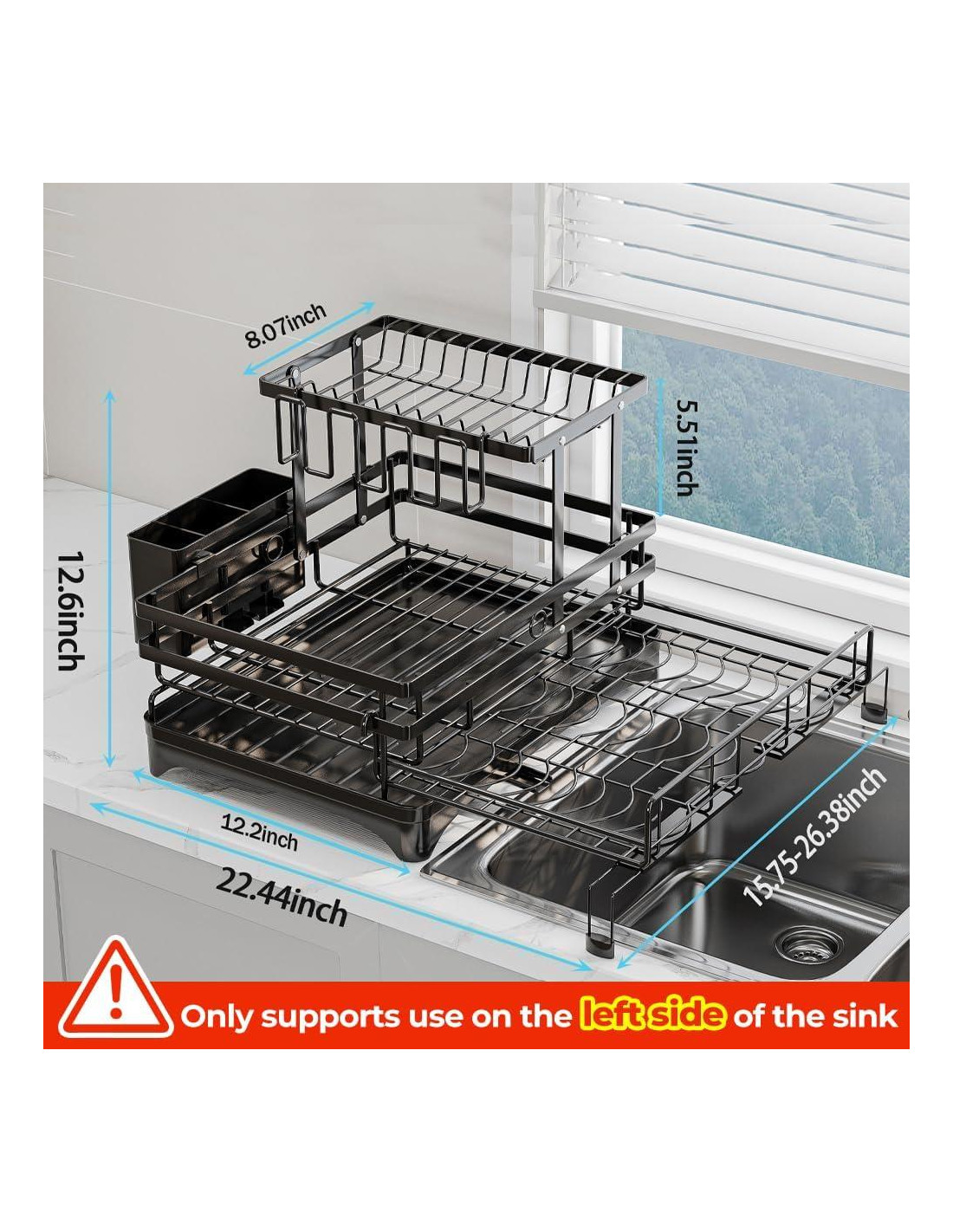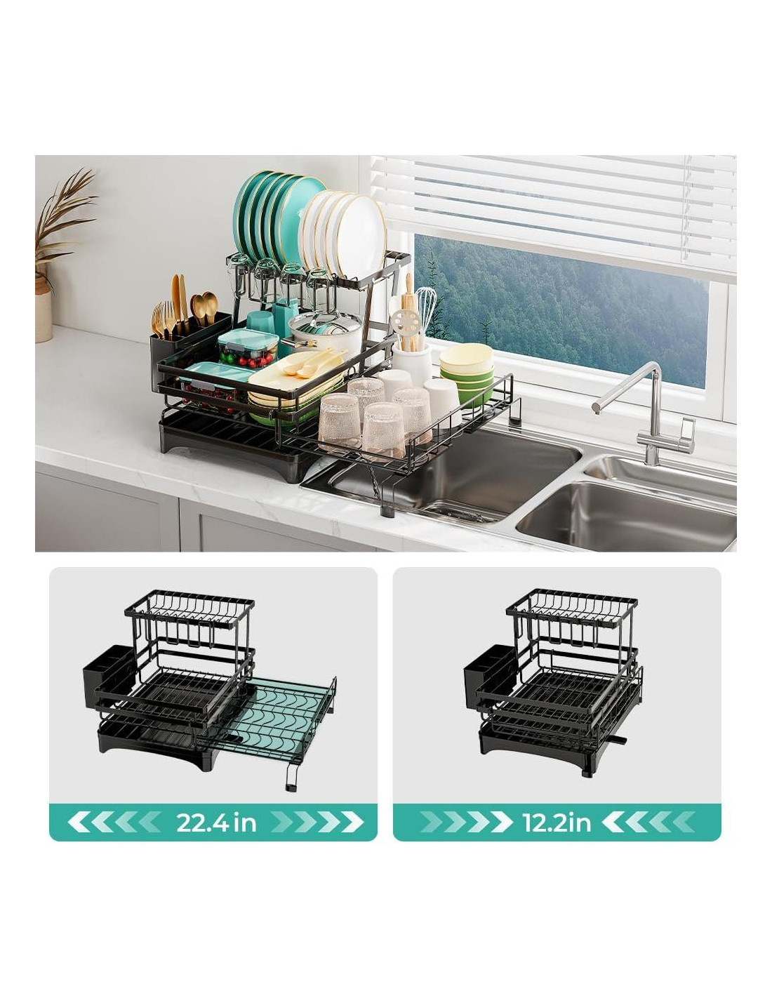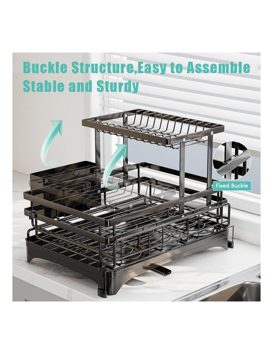 - Fácil de Instalar y Limpiar: Este Escurridor de Platos Extensible de 2 Niveles cuenta con un diseño de hebilla fija segura para un ensamblaje simple, sin herramientas, utilizando las instrucciones y accesorios incluidos. Fabricado de acero al carbono duradero y resistente a la oxidación, se limpia sin esfuerzo después de su uso.