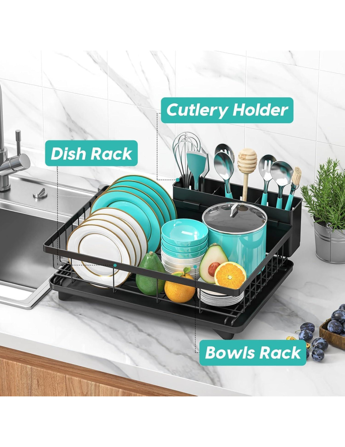 - [Estructura Robusta y Fácil Instalación] El estante para secar platos negro MERRYBOX consiste en un área para tazones y tazas, área para platos, un soporte para cubiertos de tres agujeros. Todos los componentes son desmontables, y la instalación se puede completar en 1 minuto sin herramientas. La estructura robusta de nuestro estante para platos para encimera de cocina asegura estabilidad y durabilidad.