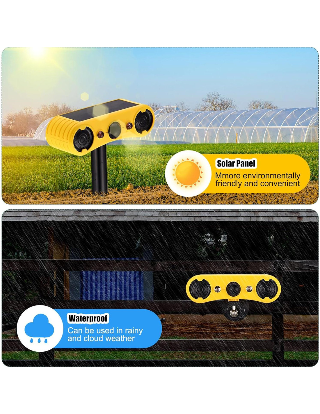 - Ahorro de Energía: Nuestra alarma solar con sensor de movimiento utiliza la luz solar como su fuente de energía. Prepárelo con una carga completa bajo luz solar intensa, y funcionará sin necesidad de cambiar la batería, proporcionando una barrera confiable para disuadir ciervos, lobos, conejos y otras criaturas de invadir su propiedad