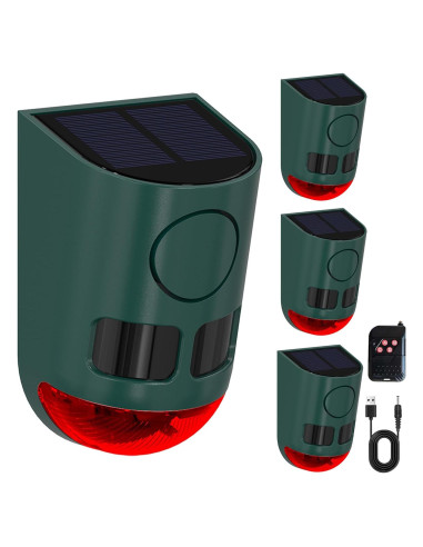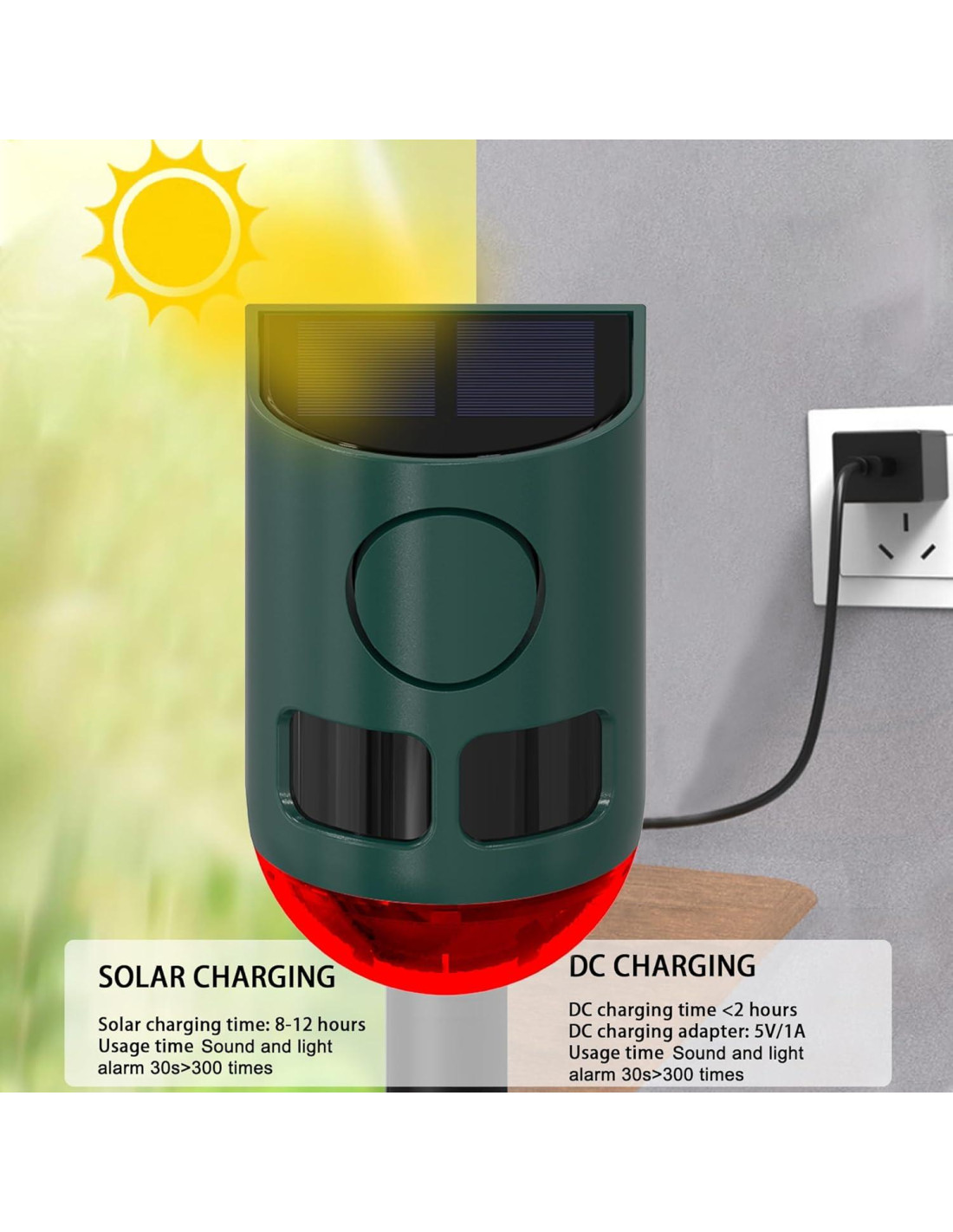 la alarma de sensor de movimiento solar para exteriores qxmh es una solución de seguridad versátil que combina luces brillantes y una fuerte alarma de 110db para disuadir a intrusos y animales no deseados. alimentada por energía solar, esta luz de alarma con detector de movimiento es ecológica y fácil de instalar, lo que la hace perfecta para entradas, jardines y espacios exteriores. cuenta con un puerto USB incorporado para carga de respaldo, asegurando un funcionamiento continuo incluso en días nublados. ideal como alarma de entrada, disuasor de coyotes o luz de sensor exterior, mantiene alejados a animales como ciervos, gansos y gallinas. con su compatibilidad con aspersores activados por movimiento, también funciona como un dispositivo disuasor de animales. ya sea que necesite un disuasor de perros ladradores, disuasor de gatos o un generador de ruido para mayor seguridad, la alarma solar qxmh ofrece un rendimiento confiable. su diseño resistente a la intemperie asegura durabilidad, convirtiéndola en un elemento imprescindible para cualquier hogar que busque una protección mejorada contra intrusos.