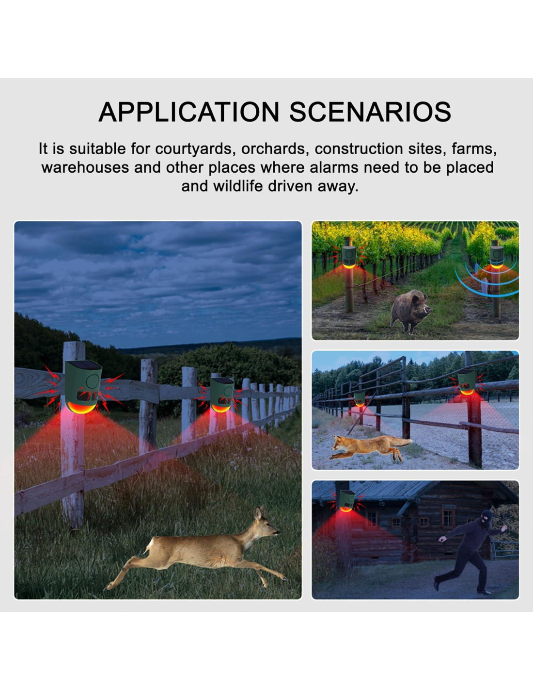 - [Fácil Instalación y Uso Amplio] Por favor, cuelga la alarma disuasoria de intrusos donde reciba suficiente luz solar. La alarma de movimiento activada por perros ladradores es adecuada para granjas, gallineros, establos, camping, hogar, jardín, patio y otros lugares donde se necesite una alarma de movimiento con sirena.