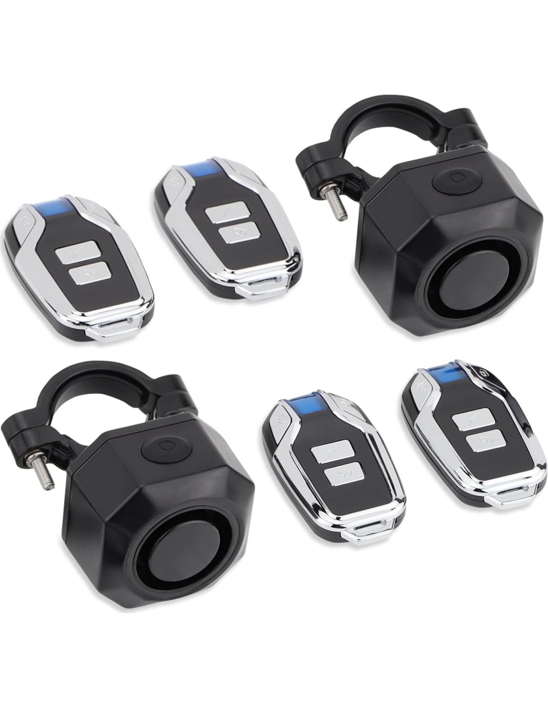 - [ Dos Remotos con una alarma] -Hay dos remotos para una alarma en un paquete; Cada alarma está equipada con dos controles remotos, uno de los cuales puede ser utilizado como respaldo