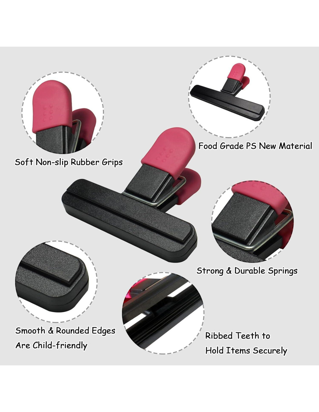 - [Diseño Útil] - Estos clips pesados y herméticos cuentan con empuñaduras suaves antideslizantes y dientes acanalados para sujetar los artículos de manera segura, evitando que tus bolsas pierdan aire y humedad. Los resortes tienen una fuerte sujeción para mantener los clips cerrados.