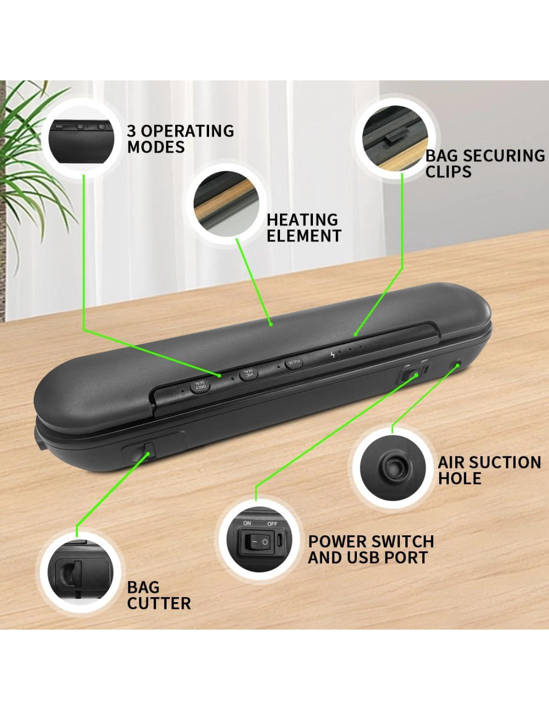 - Su compra incluye 1 Sellador de Vacío Inalámbrico, 20 Bolsas de Vacío (19.8 x 30 cm), 1 Tubo de Vacío, 1 Manual de Instrucciones, 1 Tarjeta de Soporte y 1 Cable de Carga USB-C. Diseñado para cocinas pequeñas y viajes, este sellador de vacío compacto es liviano y fácil de almacenar.