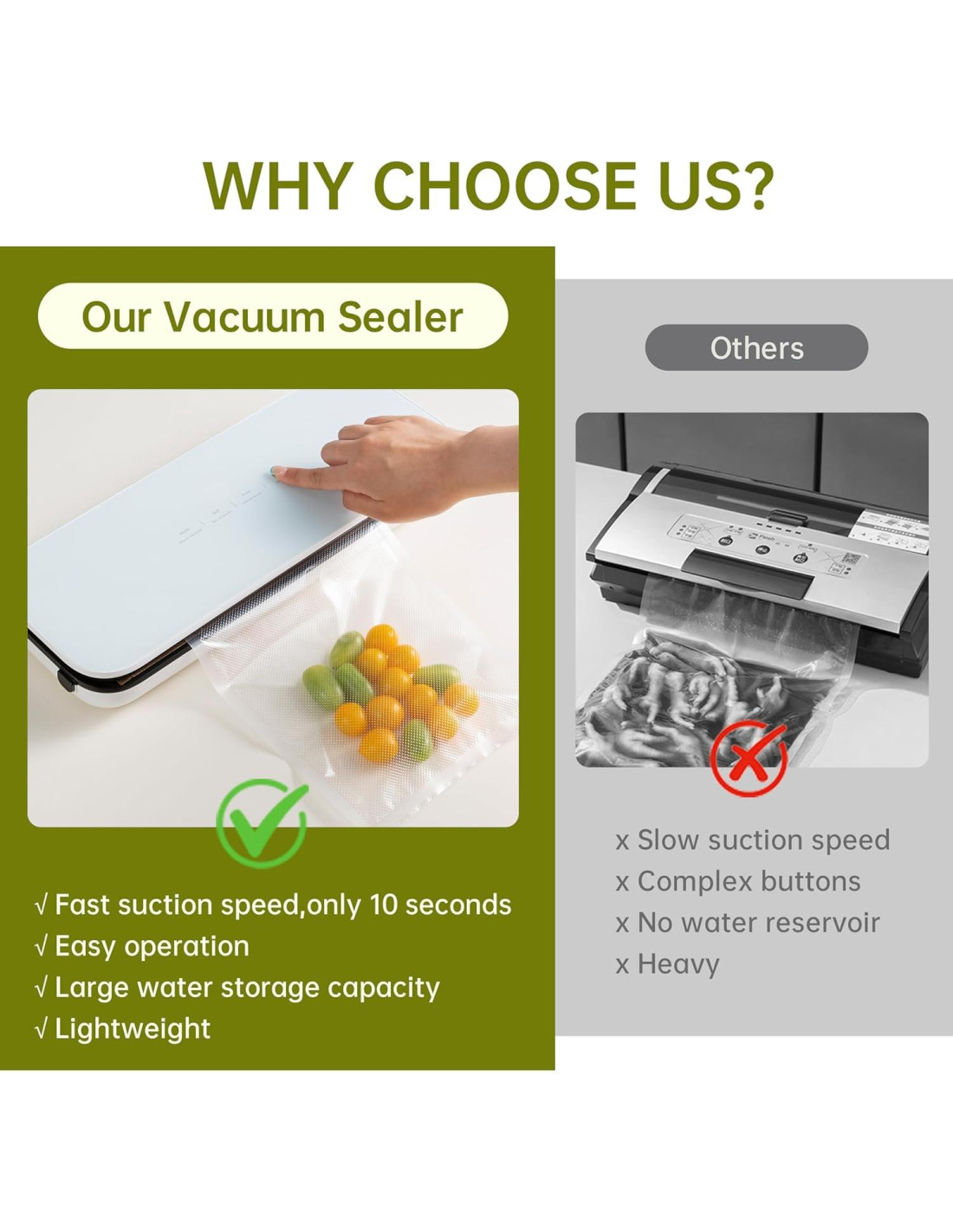 - SUCCIÓN POTENTE: El sellador al vacío ligero THETCHRY cuenta con una potente succión de 65 kPa, sellando el delicioso sabor de los alimentos en solo 10 segundos. También viene con 20 bolsas de vacío de nivel inicial adicionales, que miden 20 x 25 cm, para satisfacer sus diversas necesidades de envasado al vacío, como sellar bolsas para cocinar al vacío. Este sellador al vacío es su mejor opción.
