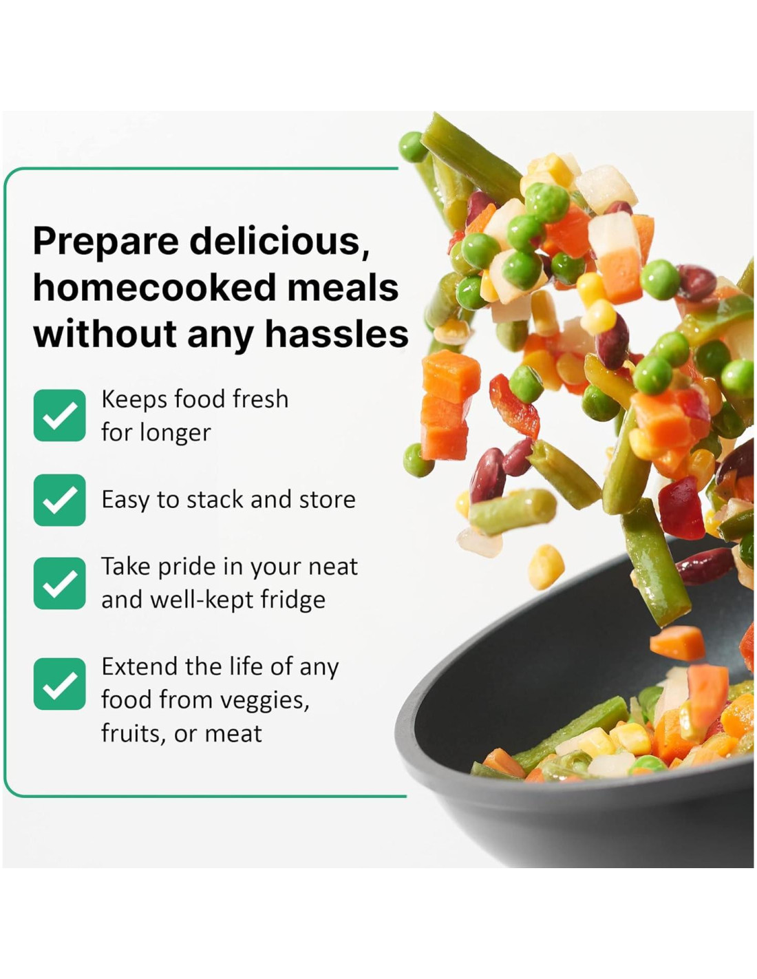 ¡Es hora de organizar y apilar tu nevera y congelador de la manera correcta con nuestras bolsas de almacenamiento para congelador! Solo presiona y sella para mantener seguros los alimentos y más. Materiales de Calidad Alimentaria Nuestras bolsas de almacenamiento de comida reutilizables están hechas de materiales PEVA seguros y de calidad alimentaria. Son seguras para el planeta, los humanos y las mascotas. Estas bolsas de cierre reutilizables no liberan productos químicos dañinos, lo que las convierte en una gran opción para el almacenamiento de alimentos.
