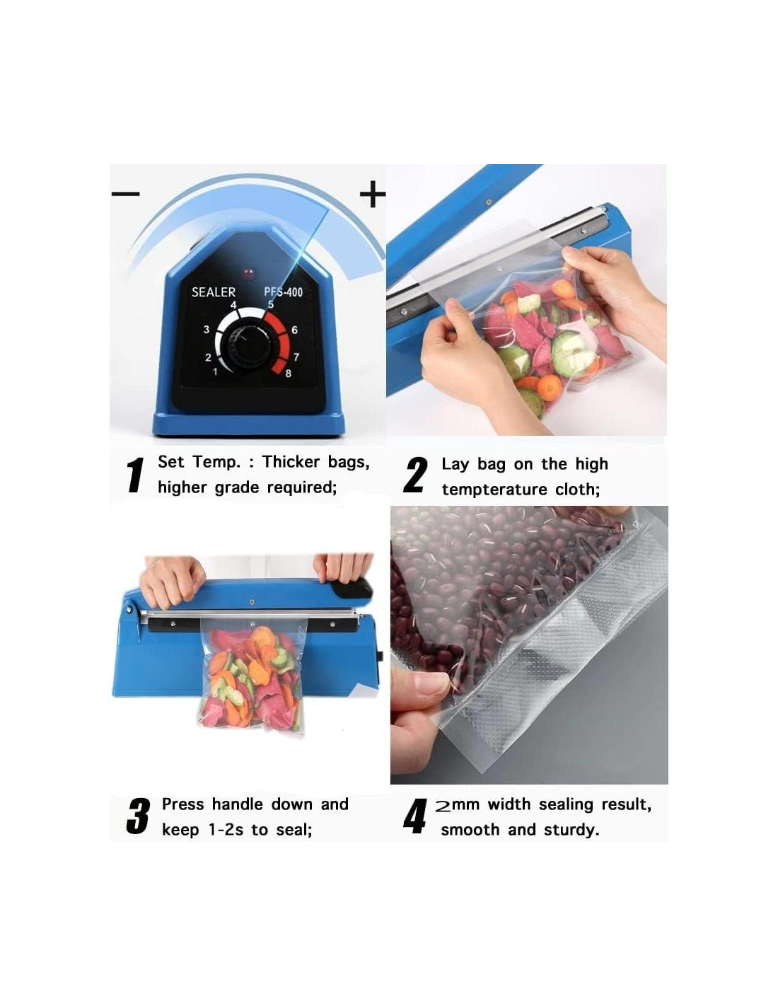 - Uso Múltiple - Ideal para sellar bolsas de plástico, bolsas de PP, PE, bolsas de aluminio y casi todas las bolsas de embalaje en hogares, restaurantes, supermercados, pequeñas fábricas y tiendas minoristas como tiendas de comestibles, farmacias, tiendas de dulces, cafeterías y puestos de bocadillos, etc. Sellos robustos aseguran que sus productos sean a prueba de humedad y manipulaciones.