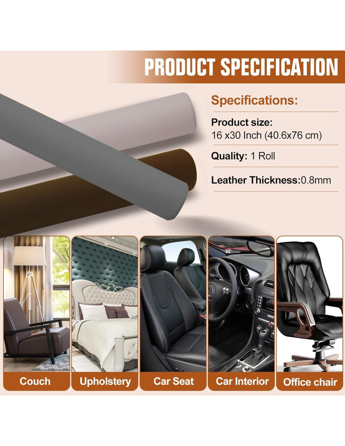 - [Material de Vinilo Premium] El kit de reparación de cuero autoadhesivo está hecho de cuero sintético de alta calidad que es extremadamente duradero y de olor amigable. Cuero suave y exquisito con buena resistencia y sensaciones al tacto. La superficie de textura de Litchi hace una bonita apariencia.
