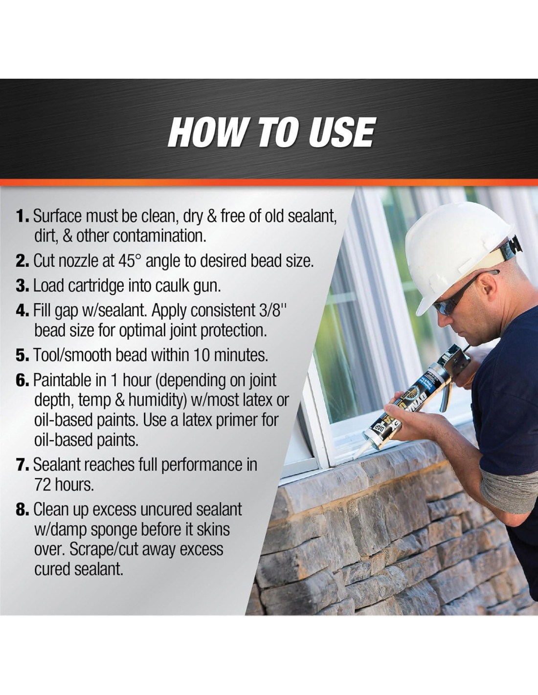 El sellador DAP Dynaflex Ultra Avanzado para aplicaciones de Ventanas, Puertas, Revestimientos y Molduras está formulado con la innovadora Tecnología Weather Max para resistir la decoloración por UV, el tiza, el desmoronamiento, las grietas y la acumulación de suciedad. Dynaflex Ultra tiene una fuerte adhesión a materiales de construcción comunes y se mantiene permanentemente flexible para un sellado duradero y a prueba de clima que proporciona Protección Todo Clima y resiste los elementos. Está listo para la lluvia y se puede pintar en solo una hora para una mejor productividad. El sellador a prueba de agua no burbujea, tiene bajo olor y se limpia fácilmente con agua. El sellador DAP se aplica sin esfuerzo y se trabaja suavemente para una fácil aplicación. Dynaflex Ultra cumple con ASTM C920, Clase 35, es conforme a VOC y se puede usar en aplicaciones exteriores e interiores. Los selladores y masillas DAP ofrecen un rendimiento duradero para una variedad de proyectos.