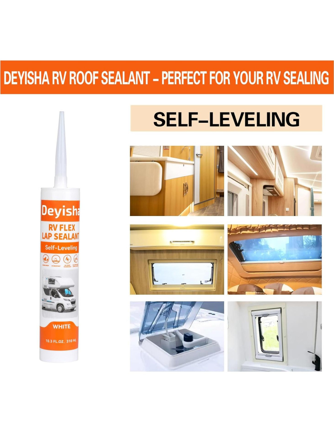 - [Sellador Autonivelante para RV] Sellador de techo RV DEYISHA, el mejor efecto autonivelante entre los productos de sellador, que solo te toma 30 segundos para autonivelarse y cubrir y sellar la brecha en el techo de tu RV.
