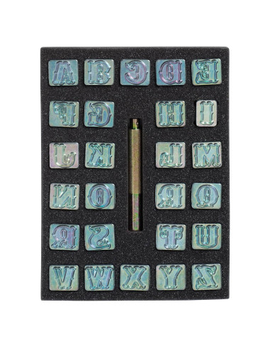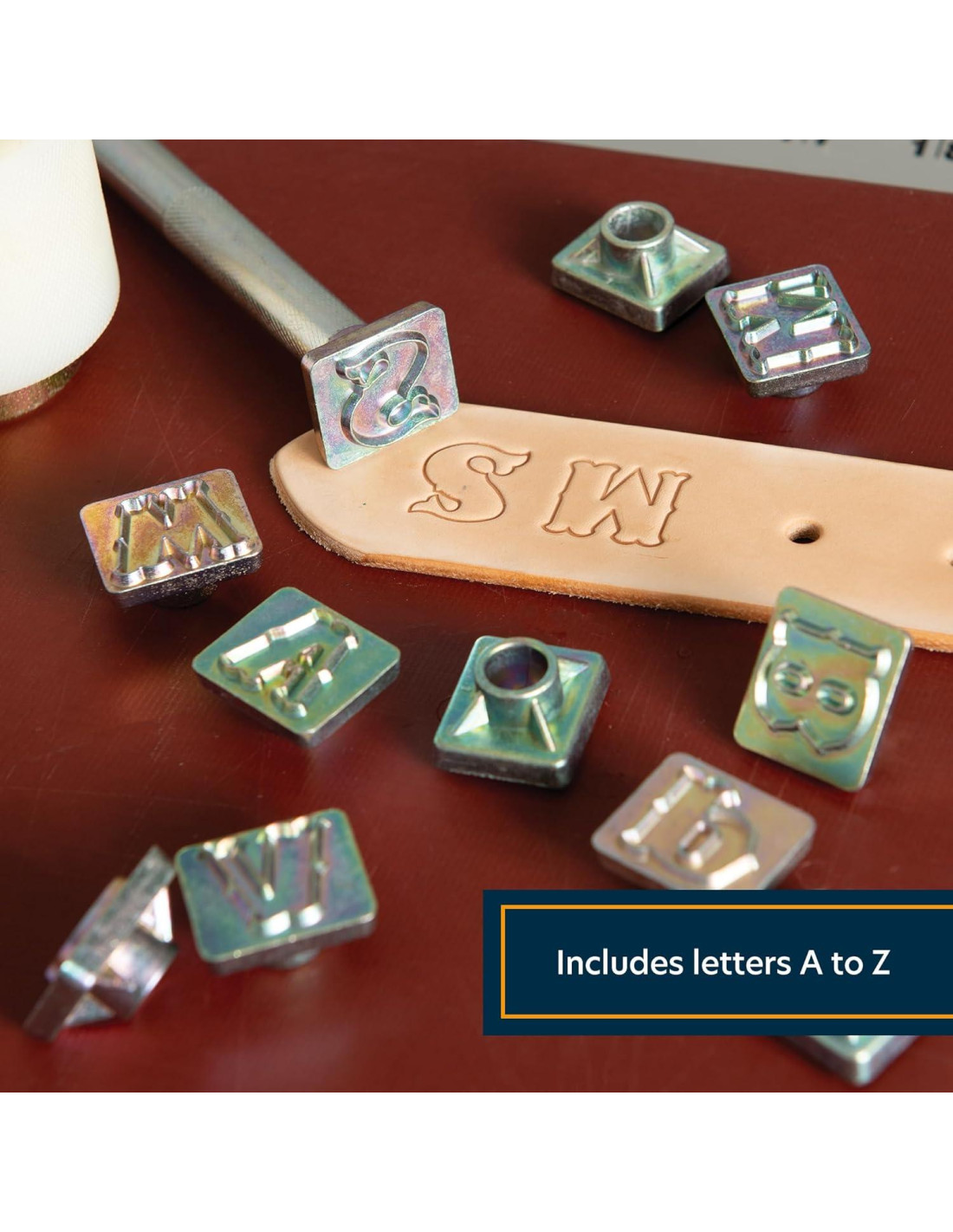 Conjunto de Sellos de Cuero del Alfabeto de Weaver Leather Supply: Crea impresiones personalizadas en tus proyectos de trabajo en cuero con nuestro conjunto de punzones de alfabeto, diseñado para ayudarte a imprimir fácilmente diseños de letras nítidas en superficies de cuero. Este kit de sellos de letras de cuero presenta letras mayúsculas de la A a la Z, con cada letra midiendo 19 mm (3/4 pulgada) para infinitas posibilidades creativas. Construido con una duradera construcción fundida a presión, estos sellos de herramientas de cuero ofrecen impresiones claras y nítidas, mientras que el mango incluido sostiene cada sello de manera segura en su lugar para un martilleo constante con un mazo. Perfecto para agregar nombres, iniciales o mensajes personalizados, estos sellos de cuero personalizados elevan el estilo y la personalidad de cada creación de cuero. Convenientemente empaquetados en un embalaje acolchado para proteger los finos detalles del sello, estos sellos de trabajo en cuero llegan listos para mantener su forma prístina en todo momento. Desde cinturones y bolsas hasta billeteras y más, estas herramientas de estampado de cuero son una adición imprescindible a tu kit de herramientas.