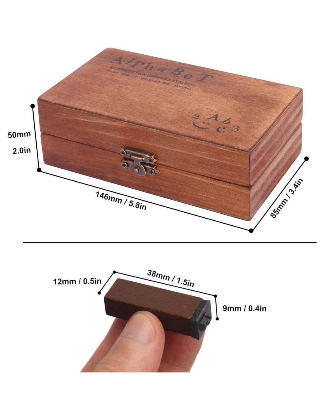 - [Dimensiones Consideradas] Cada sello de letra mide aproximadamente 1.19 x 0.99 x 3.81 centímetros, lo que lo hace ideal para estampar en arcilla o papel. La caja de madera para un almacenamiento conveniente mide 14.73 x 8.64 x 5.08 centímetros.