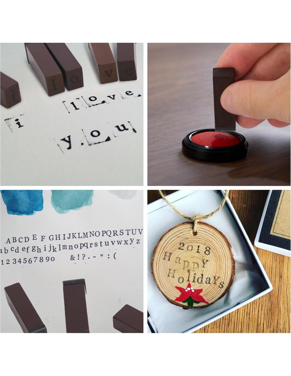 - [ Set de Sellos Completo] Nuestro paquete de 210 (3 cajas) sellos de goma de madera, cada set (cada caja) incluye 26 letras mayúsculas, 26 letras minúsculas, números 0-9 y 8 sellos simbólicos, lo que lo convierte en una herramienta versátil para tus proyectos de tarjetas de manualidades, scrapbooking y creación de tarjetas.