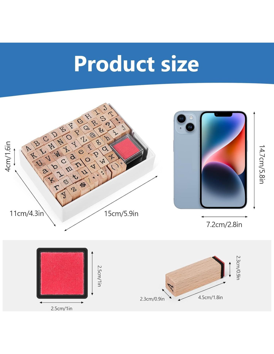 - [Conjunto Completo para Uso Instantáneo] Incluye 65 sellos de goma de madera (A-Z, a-z, símbolos) y 3 colores de almohadillas de tinta (negro, rojo, azul). ¡Puedes usar los sellos de scrapbook tan pronto como recibas el paquete! Las almohadillas de sellos son almohadillas de pigmento a base de aceite de excelente calidad. Tiene colores brillantes y vibrantes, sellos claros, y es a prueba de agua una vez que se seca.