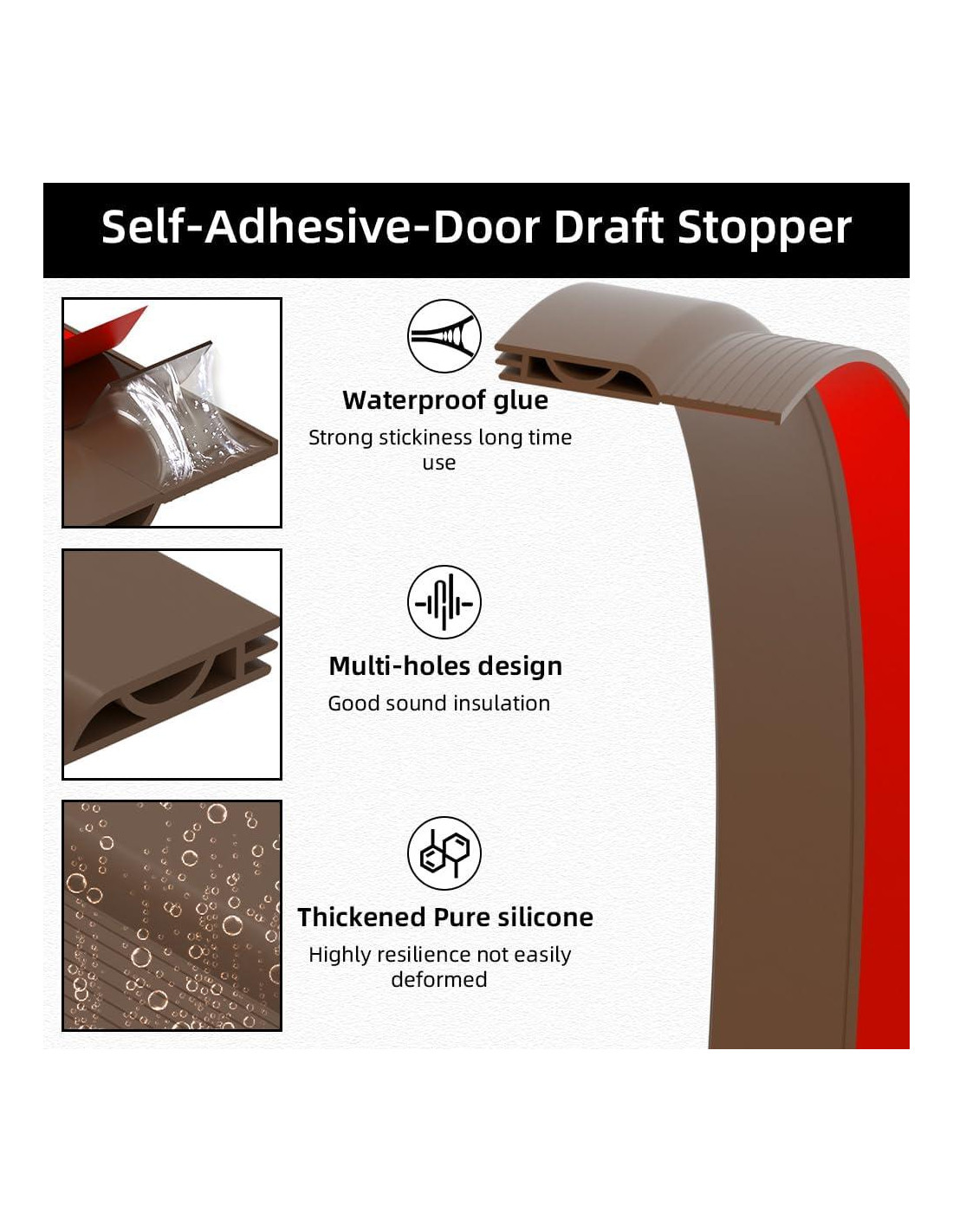 - Respaldo Adhesivo Impermeable Super Ancho - Fuerte Adhesión. Mejora el relleno de huecos bajo la puerta con un respaldo adhesivo ampliado de 1.5 pulgadas (3,81 cm) y una ranura de 1 mm. Al encontrar resistencia y fricción con el suelo, el adhesivo no se levantará. Esto se adhiere bien, no hace ruido al arrastrarse cuando la puerta se abre/cierra. Por si acaso, puedes usar cinta o chinchetas como capa protectora.