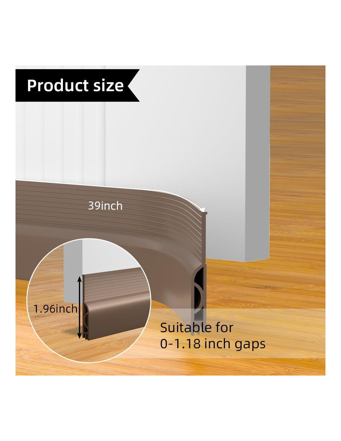 - Instalación en Menos de 1 Minuto - Ajustable. Tamaño del tapón para corrientes de aire bajo la puerta: 1.96" (4,99 cm) de ancho x 39" (99,06 cm) de largo, sella el hueco de 0 a 1.18 pulgadas (2,99 cm). Mide dos veces, corta una vez: es importante medir con cuidado. Un poco de medición extra puede prevenir el desperdicio de material. (Nota: 1. En clima frío, recomendamos calentar el adhesivo durante 2 minutos con un secador de pelo antes de la instalación. 2. El burlete para puertas no funcionará bien si la superficie de la pared es rugosa o tiene textura. 3. Por favor, presiona varias veces y déjalo reposar durante 24 horas.