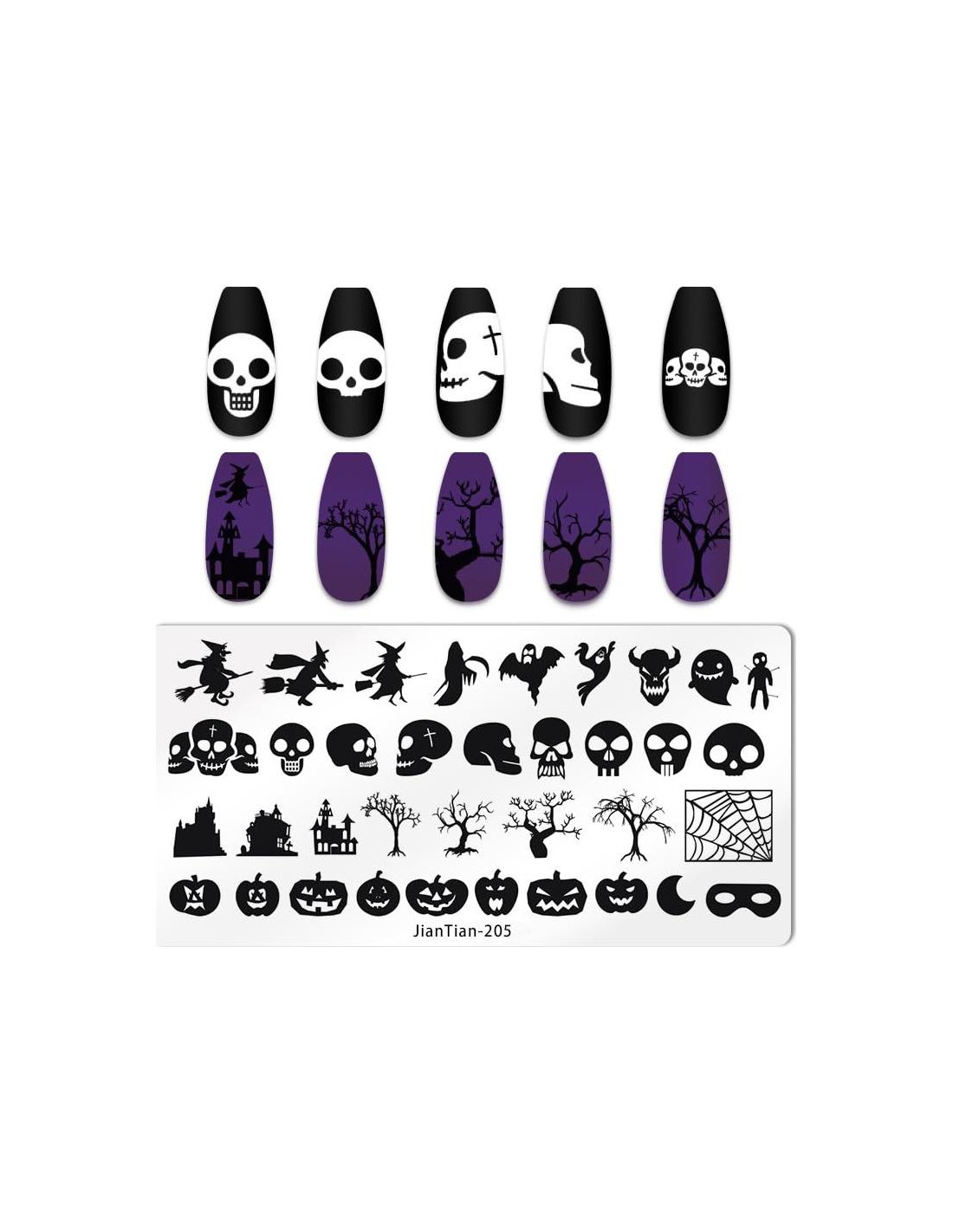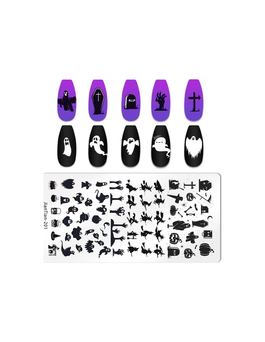 - [PATRONES DE TEMA DE HALLOWEEN] : Cada plantilla contiene varios tipos de patrones, como bruja, fantasmas, calavera, vampiro, cementerio, cruz, araña, murciélagos, gatos, telaraña, calabaza, llama, castillo y más, cantidad y patrones suficientes pueden satisfacer sus diversas necesidades, lleno de atmósfera festiva y hará que su uña sea más atractiva.