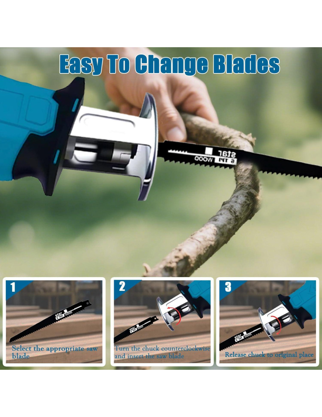 - IMPORTANTE: Baterías NO incluidas-solo herramienta. Este conjunto de sierra recíproca incluye: 1x sierra recíproca, 4x hojas, 1x caja de almacenamiento. Perfecto para trabajos de carpintería DIY, corte de madera/tuberías de PVC/metal, desbroce, poda y eliminación de escombros.