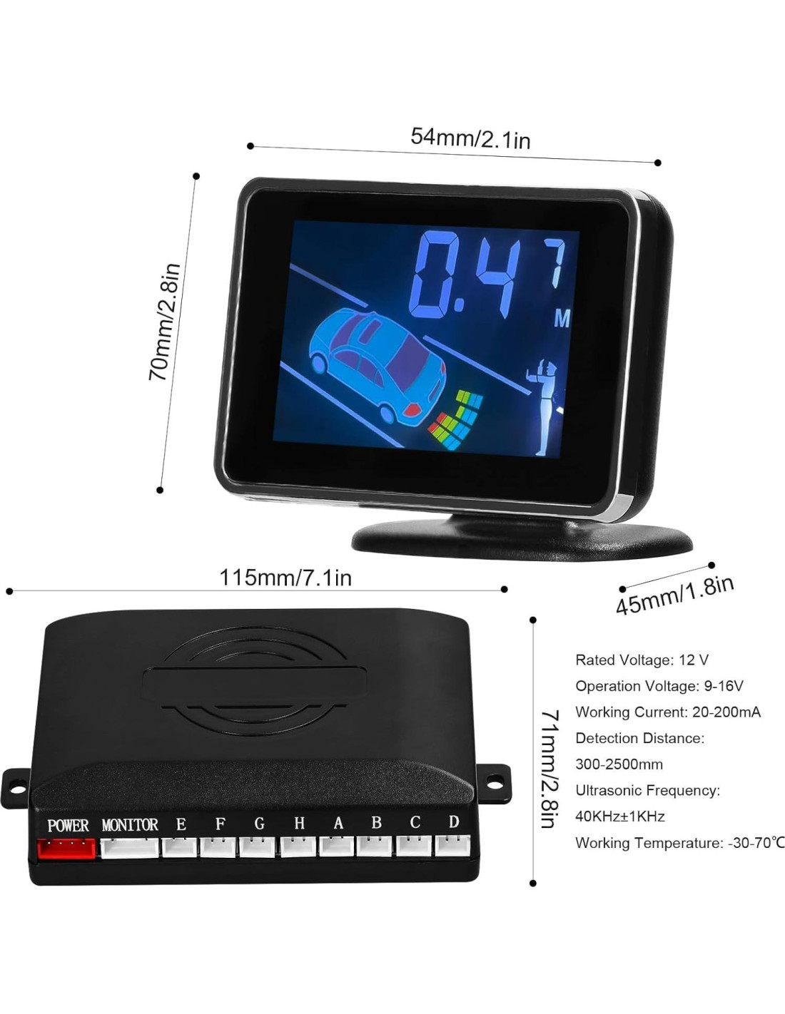- Preciso: La precisión de detección del sensor es de 300-2500mm, y la pantalla puede mostrar con precisión la distancia de los obstáculos y recordarle que detenga el automóvil a tiempo.