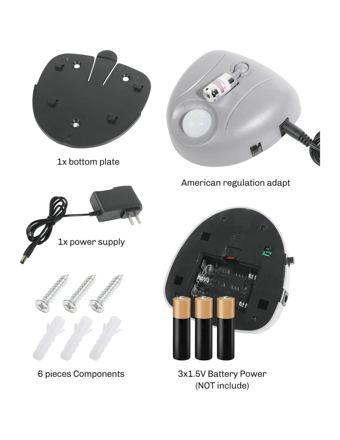 - [Diseño de Potencia] El láser de estacionamiento en el garaje está equipado con un adaptador de alimentación estándar americano. Puedes enchufarlo en la toma de corriente del garaje o elegir la alimentación por batería, por lo que si tu comunidad pierde energía, aún puede funcionar durante un tiempo.