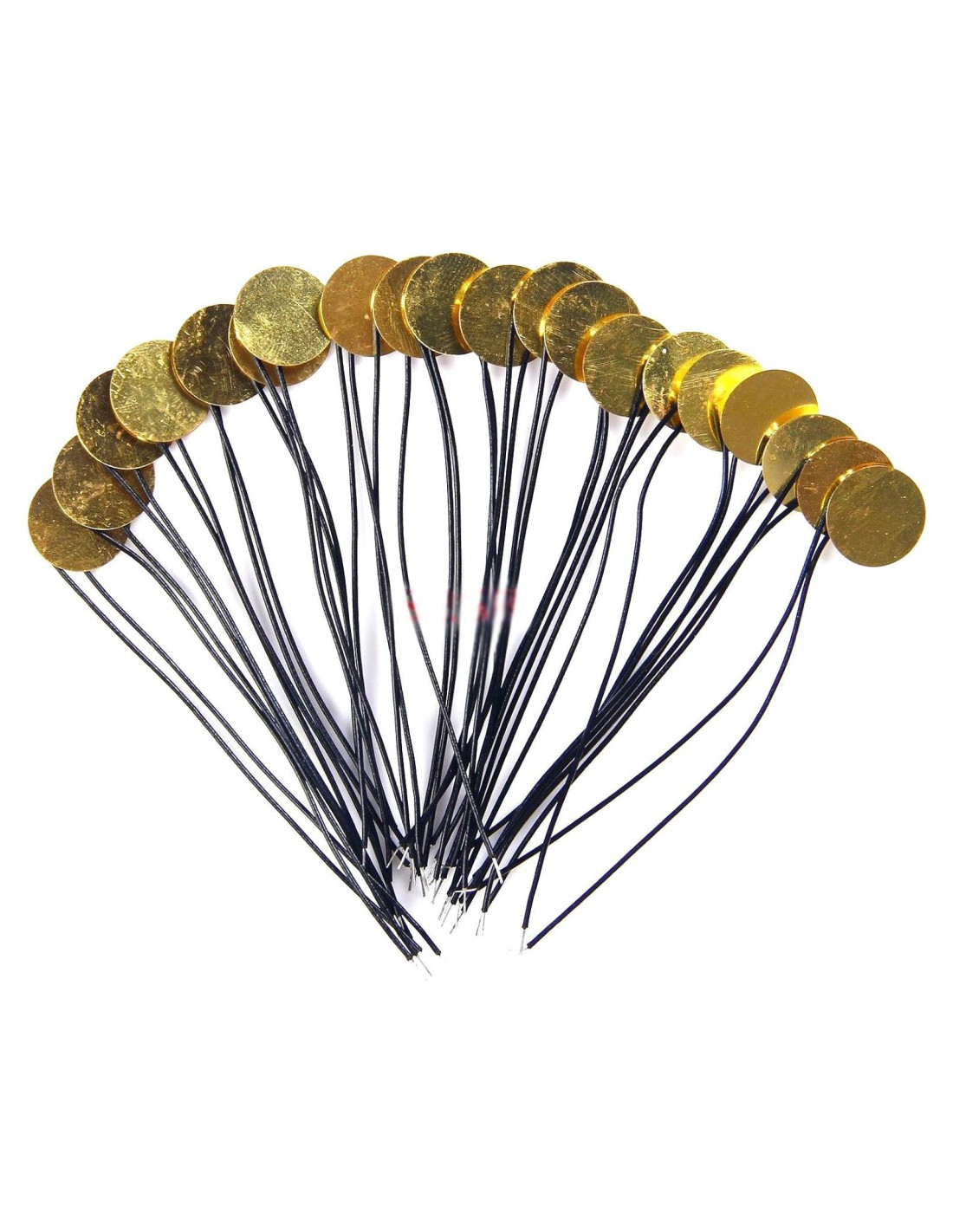 Características: 100% Nuevo y de Alta Calidad Elementos piezoeléctricos sin caja Aplicaciones de voz y música Amplia respuesta tonal 12mm con cables voladores Especificación: Frecuencia resonante (KHz) Fs=9.0+/-1.0 Impedancia resonante () Rr=500 Capacitancia a 120Hz (NF) Co=11+/-30% Temperatura de funcionamiento (C) -20*+70 Temperatura de almacenamiento (C) -30*+80 Color: Como se muestra en las imágenes Material: Cobre, PVC Tamaño: Diámetro de la placa metálica (mm): 12 Longitud del cable: 7cm Cantidad: 20pcs Peso neto: 5g Nota: La iluminación, la pantalla y otros factores pueden causar SOMBREADO DE COLOR, por favor, consulte las imágenes y descripciones de texto para determinar. El paquete incluye 20 x Sensores Buzzer de 12mm