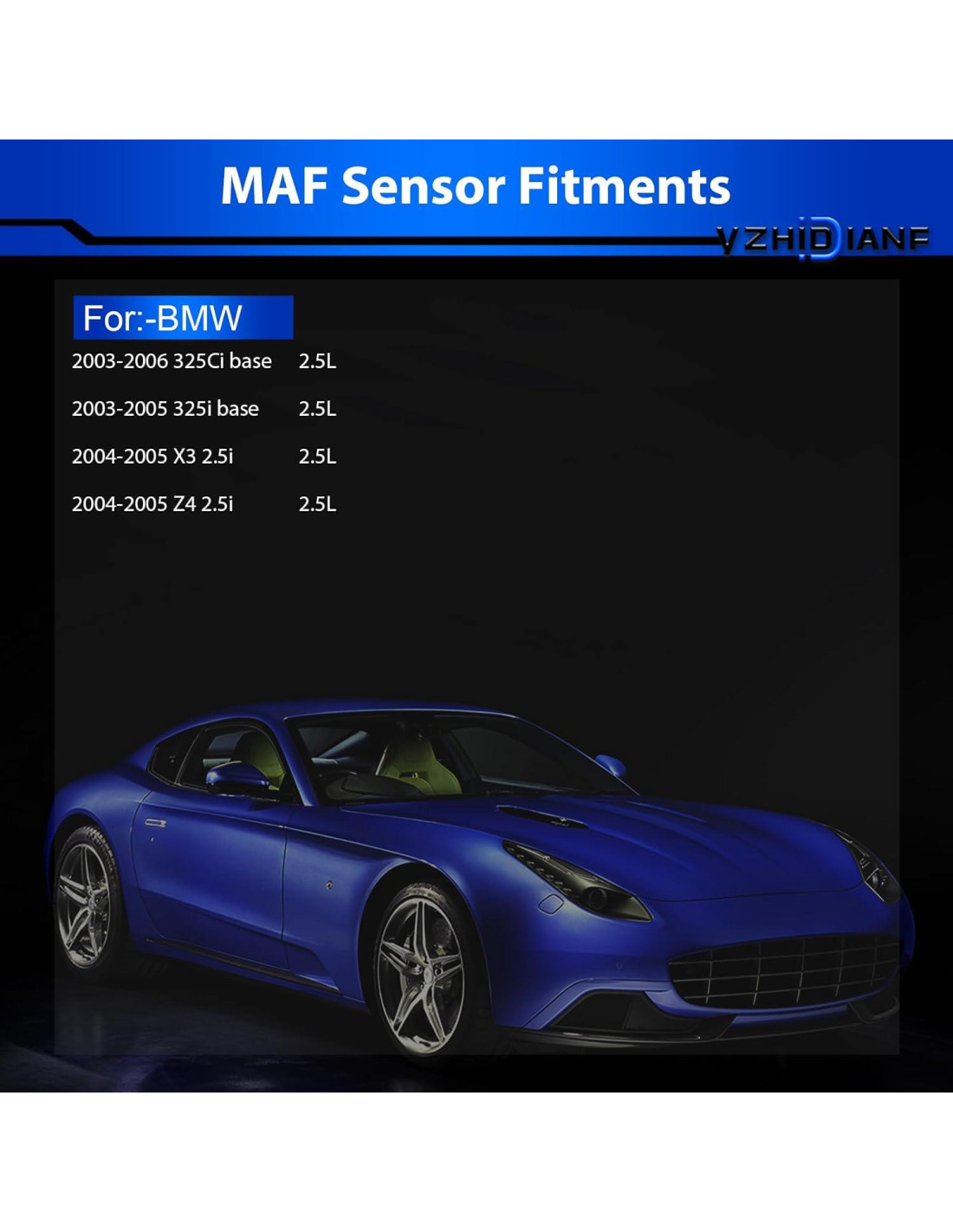 - Usos específicos del producto: Sensor de flujo de aire masivo para:-BMW 2003-2006 325Ci base 2.5L, 2003-2005 325i base 2.5L, 2004-2005 X3 2.5i 2.5L, 2004-2005 Z4 2.5i 2.5L