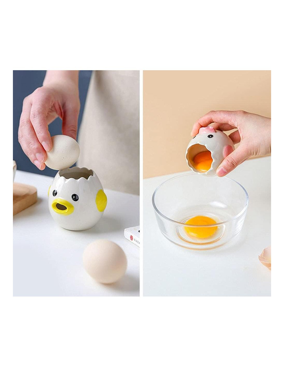 - Fácil de Usar: Rompe el huevo en el separador colocándolo en la abertura superior y luego la clara de huevo puede fluir directamente por la boca del pollito para que la clara esté libre de la yema. El proceso es rápido e interesante