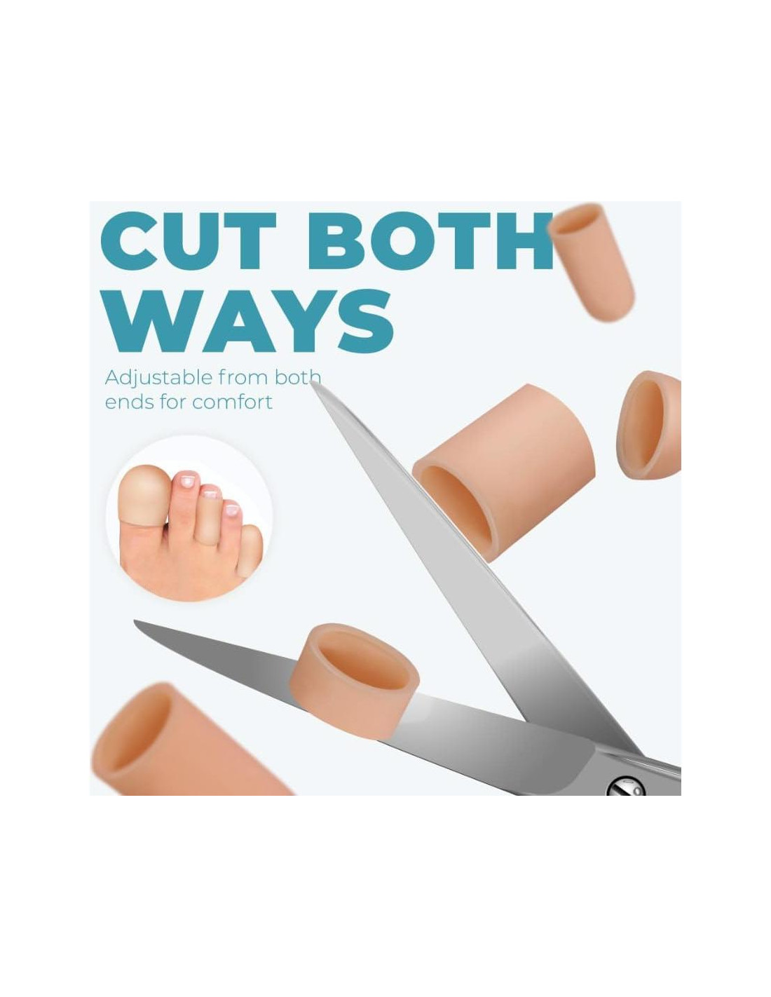- Ajustable y Fácil de Usar - No más luchas con vendajes. Nuestros Protectores de Dedos de Gel se pueden recortar fácilmente con tijeras para una cobertura perfecta. Son lavables, reutilizables y vienen en un paquete de seis