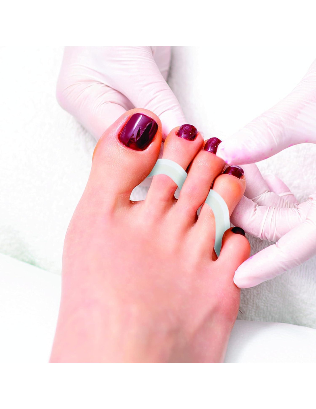 - Separadores de Dedos para Pedicura: Los Separadores de Dedos para Pedicura están diseñados para separar los dedos y prevenir que las uñas se toquen durante los servicios de pedicura.