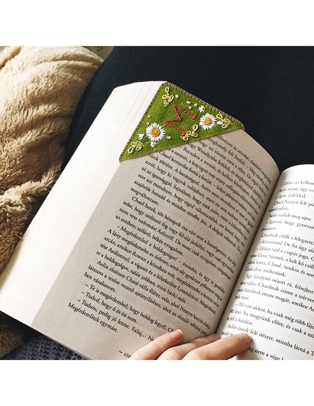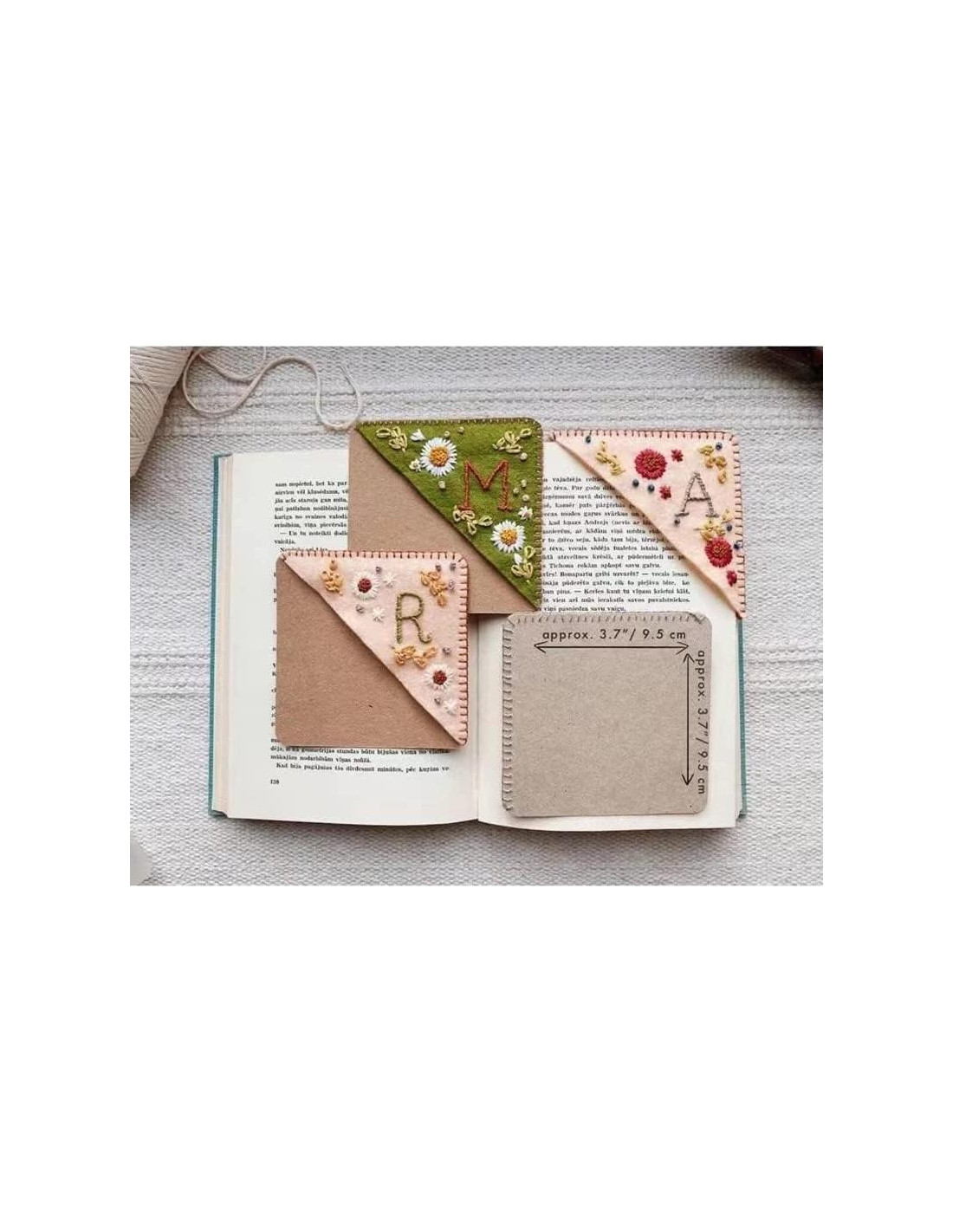 - Marcador de Página Esquina Bordado a Mano Personalizado - Cada Marcador de Página Esquina está completamente bordado a mano y está hecho de fieltro y cartón reciclado. Estos materiales son muy ecológicos.