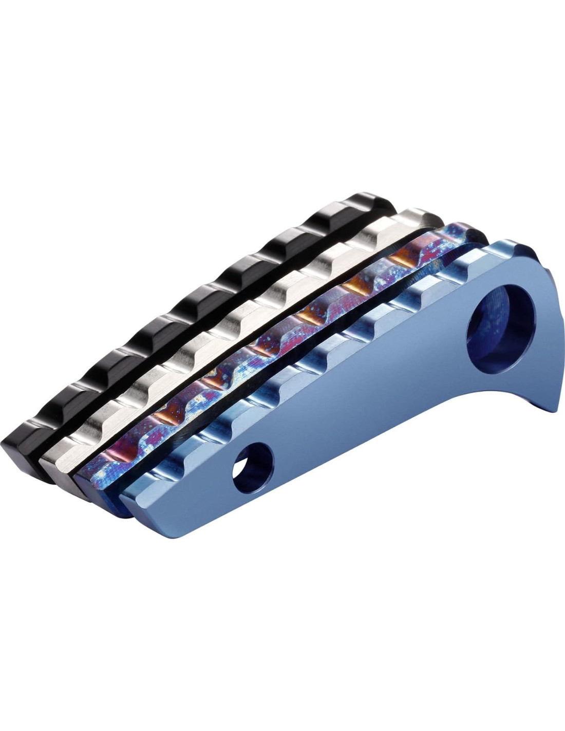 - [ACABADO ANODIZADO] - Fabricados con aleación de titanio anodizado en lugar de pintados, estos separadores traseros ofrecen una protección superior contra el óxido y la corrosión. El acabado elegante no solo añade una capa extra de durabilidad, sino que también mejora el atractivo estético de tu cuchillo.