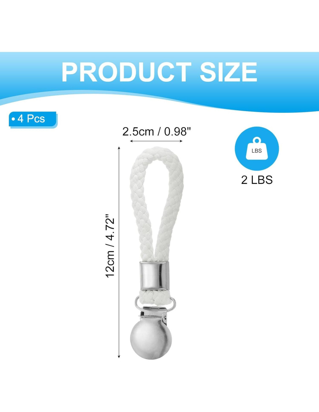- Color: Blanco; Material: Poliéster, Acero Inoxidable; Tamaño: 12x2.5 cm (4.72x0.98 pulgadas); Lista de Empaque: 4 Piezas x Clip de Toallas de Cocina de Metal