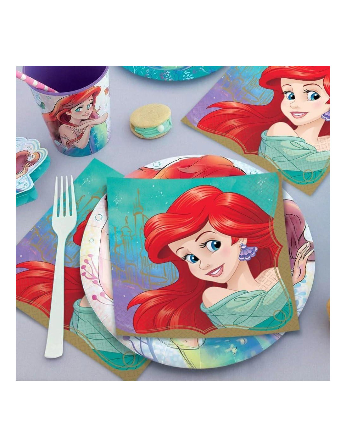 - COORDINA CON OTROS SUMINISTROS DE FIESTA DE ARIEL: Completa tu reino de sirenas con nuestra amplia gama de suministros y decoraciones de fiesta de Princesa Disney Ariel, como platos, vasos y utensilios. Sumérgete y deja que tus sueños se desplieguen.