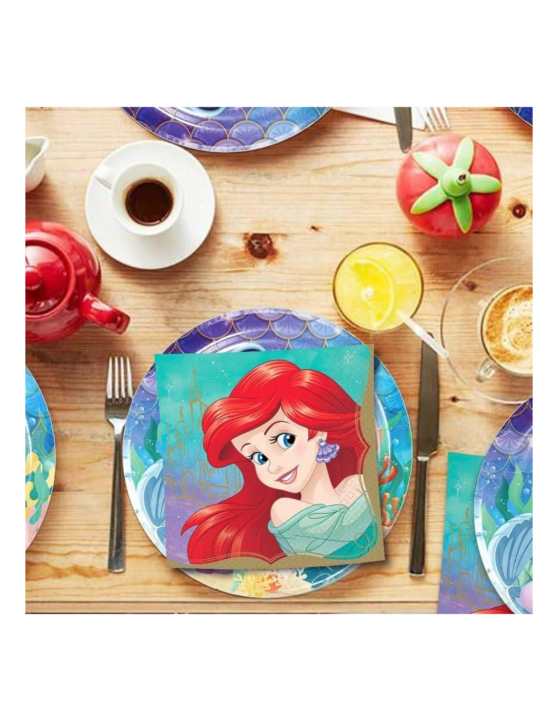 - DISEÑO DISNEY ENCANTADOR: Consigue estas mágicas Servilletas de Almuerzo de Princesa Disney Ariel, que presentan a la Sirenita misma, y haz que tu celebración temática de sirenas sea aún más especial. Perfectas para fiestas de cumpleaños, eventos temáticos y uso diario.