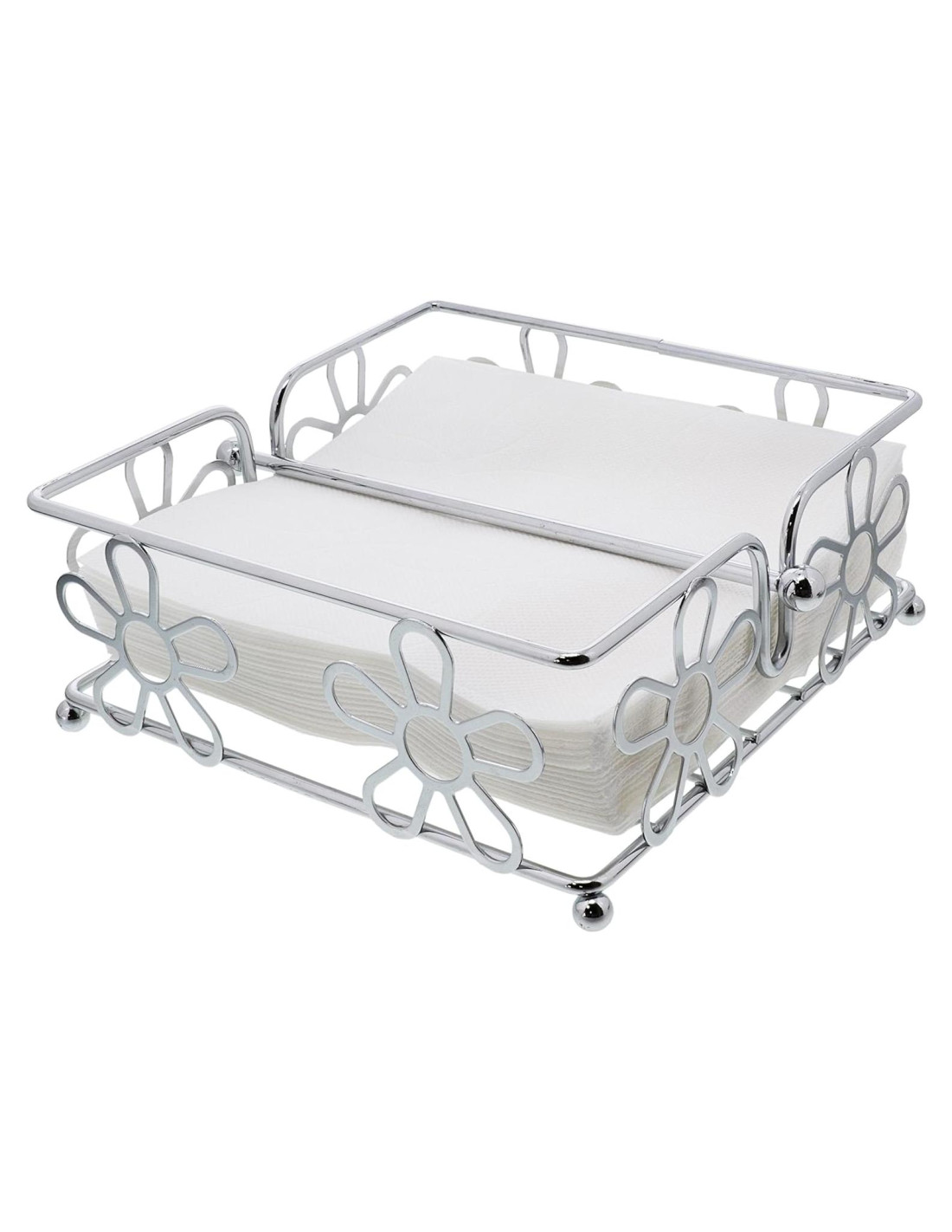 - Los lados están formados por flores de metal que añaden belleza a este soporte para servilletas.