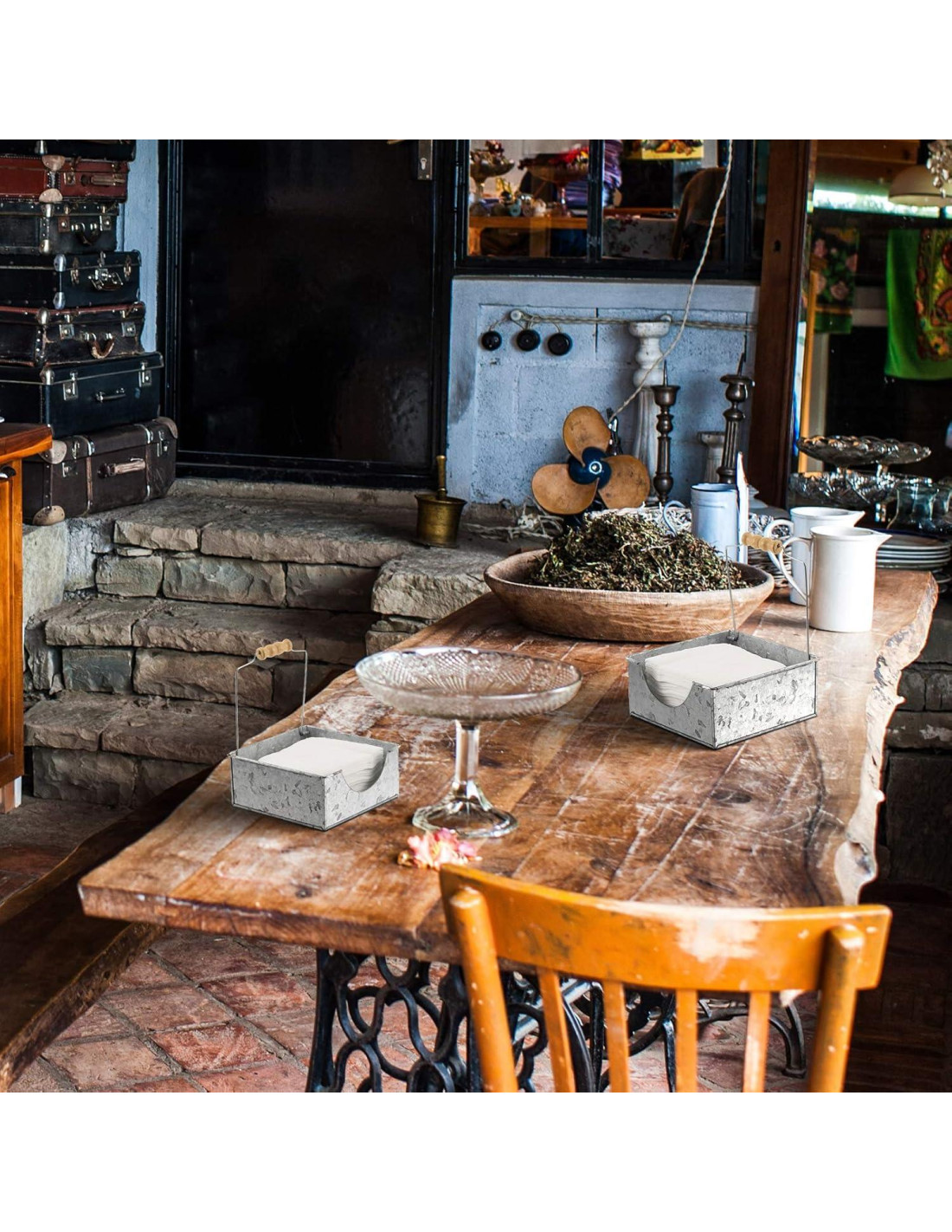 - Paquete: nuestro paquete incluye 2 piezas de soporte para servilletas rústico de acero galvanizado, creará un aspecto decorativo de granja lindo en la parte superior de la mesa, el acero galvanizado no se oxidará fácilmente