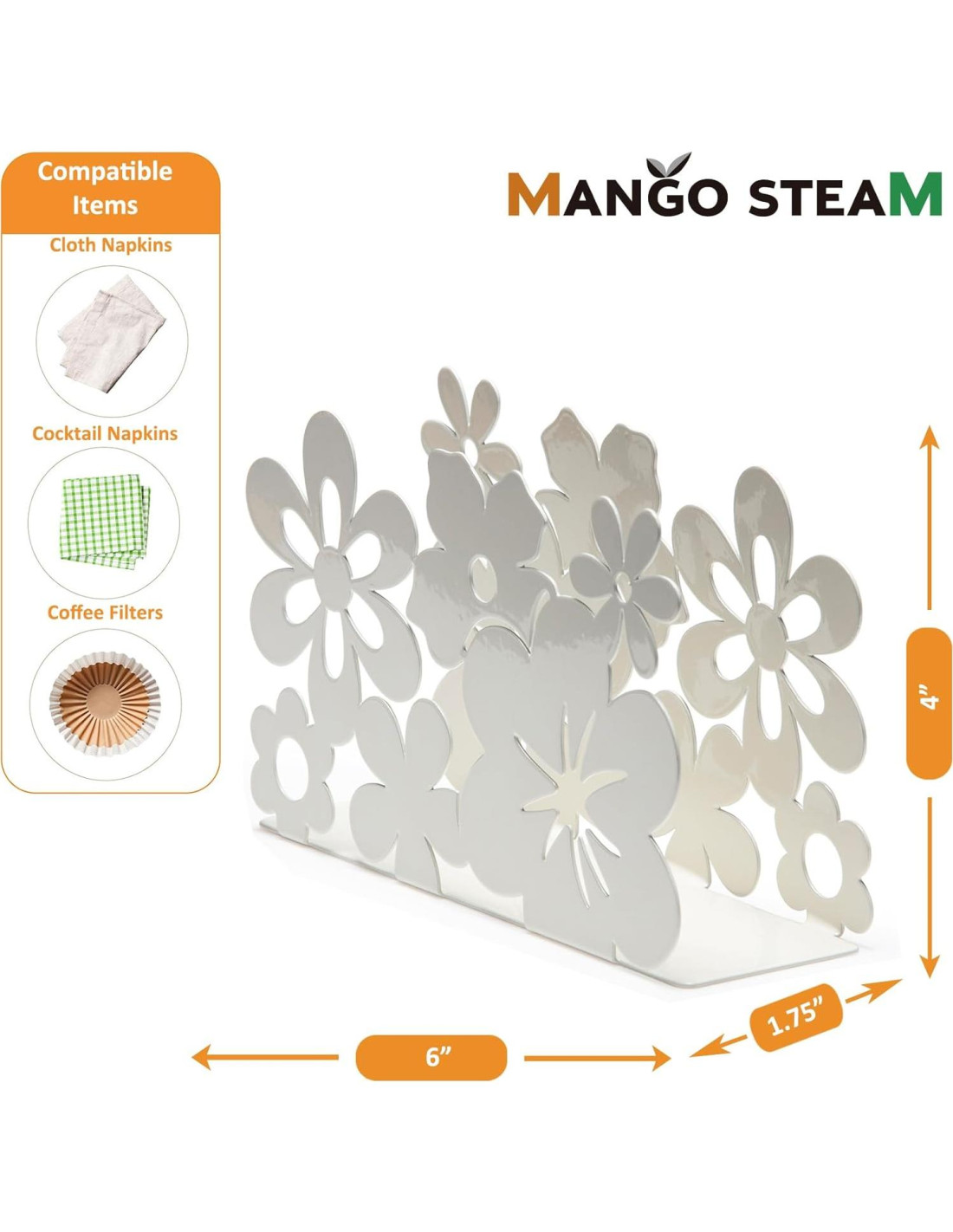 Agrega un toque de felicidad botánica a tu cocina con la ayuda de este soporte de servilletas inspirado en el jardín. Fabricado en acero duradero, cuenta con un recubrimiento en polvo para prevenir la acumulación de óxido y rasguños. Su patrón de flores ornamentado funciona como una elegante vajilla y lo convierte en una hermosa adición a la cocina y al comedor tanto para el uso diario como para ocasiones especiales. Llénalo con servilletas de tamaño estándar de todo tipo, desde papel hasta tela. Su diseño independiente y conveniente te permite llevarlo contigo donde lo necesites. Corte láser de precisión para un estilo y apariencia hermosos. Recubierto en polvo para durabilidad y resistente al óxido. ¡Disponible en rojo, blanco o negro! Diseño llamativo que se puede personalizar con una variedad de servilletas de colores para una decoración que se ajuste a tu hogar. ¡Agrega servilletas temáticas de vacaciones para una decoración navideña fácil! Ahorra espacio en la encimera ya que solo mide: 15.24 cm L x 4.45 cm W x 10.16 cm H