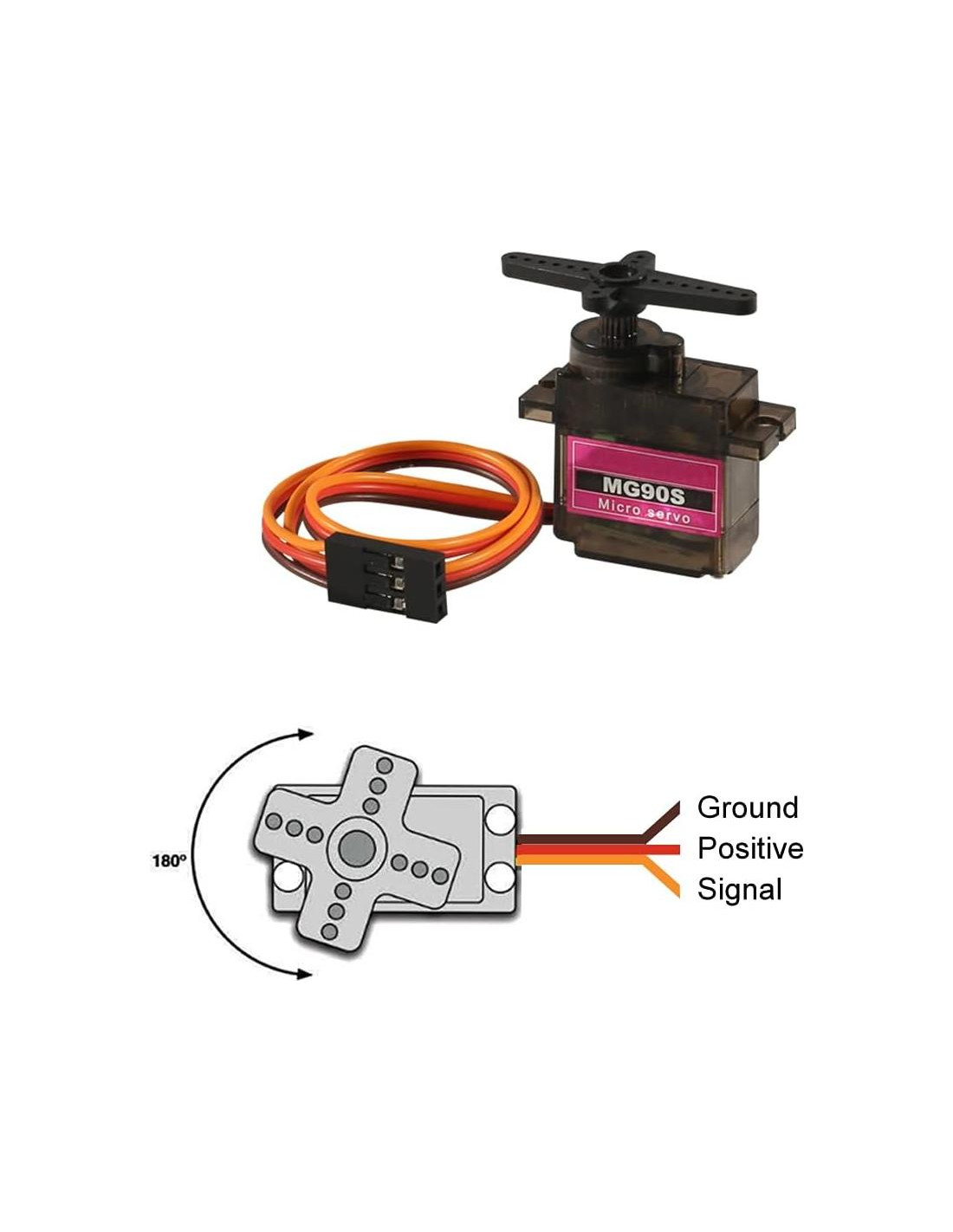 - Engranaje de servo micro MG90S con menos ruido, los engranajes ayudan con el movimiento, estos rotarán en la dirección adecuada.