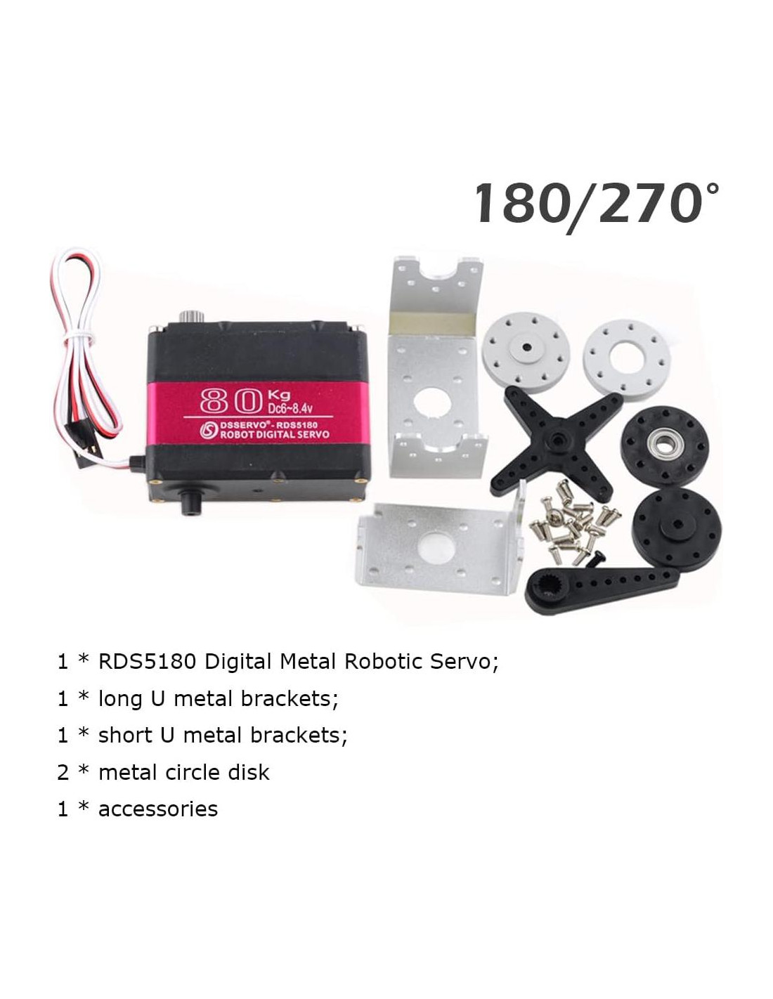 - Servo Robótico de 80kg para coche RC 1/5, oruga y robot. Ampliamente utilizado en vehículos de coches oruga de control remoto, camiones, barcos, aviones, helicópteros, brazo robótico, etc.