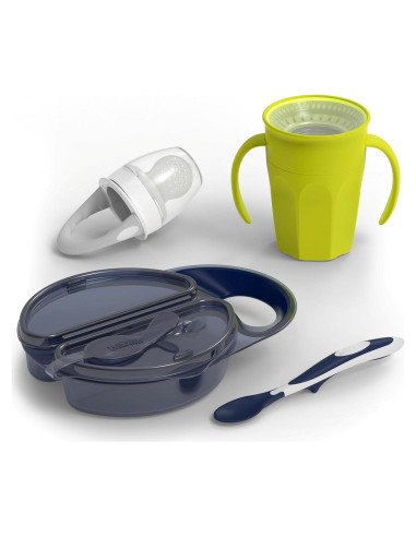- Característica especial: Azul Oscuro - Tazón y Cuchara Fresh de Viaje, Gris - Alimentador de Silicona Fresh Firsts para Sólidos Suaves, Verde Claro - Taza Sin Pitorro Cheers 360 con Asas