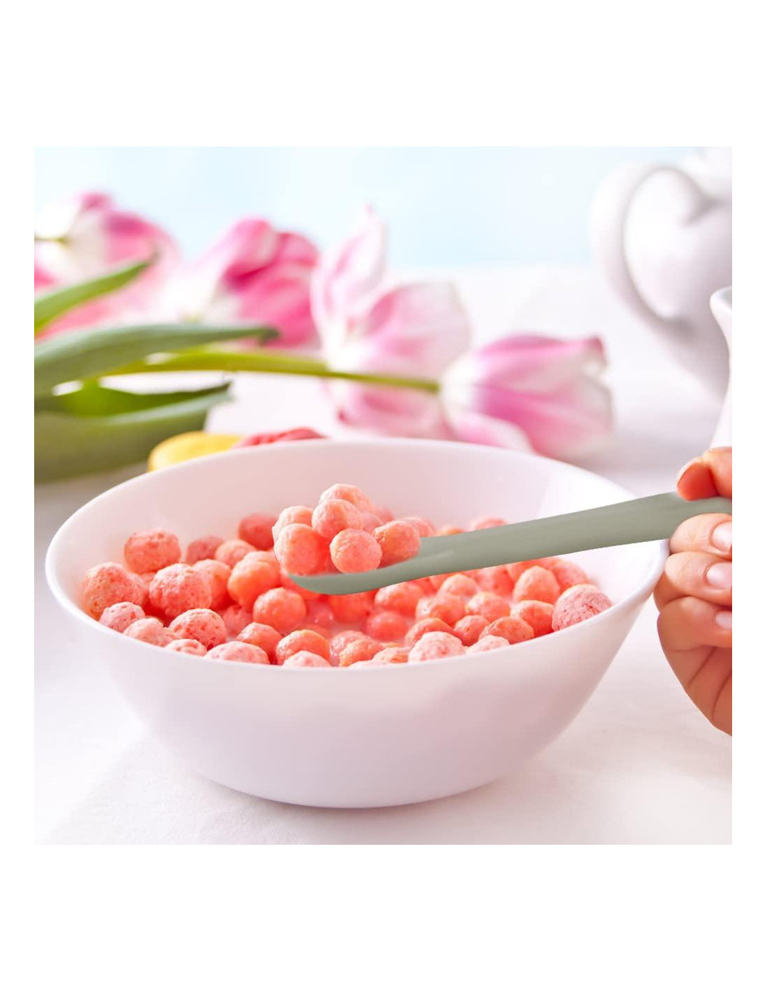 - Color: Cuchara y tenedor azul, rosa y gris