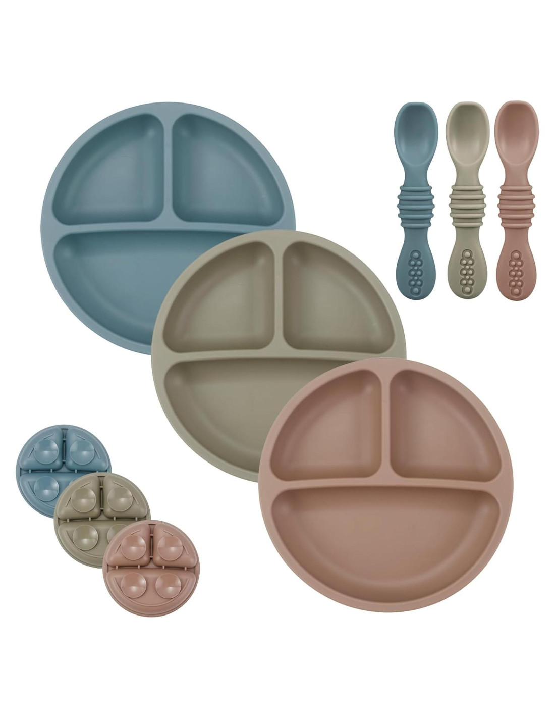 - Juego de 3 Platos para Bebés de Silicona 100% y 3 Cucharas para Bebés: Hemos utilizado silicona libre de BPA en la producción de nuestras cucharas y platos de silicona para bebés, por lo que el sabor y el gusto no se ven afectados, además de brindarte total tranquilidad. Este suministro de alimentación para bebés es libre de BPA, PVC y ftalatos, ligero y resistente a roturas. Usa un poco de agua debajo de la succión antes de usar para obtener los mejores resultados.