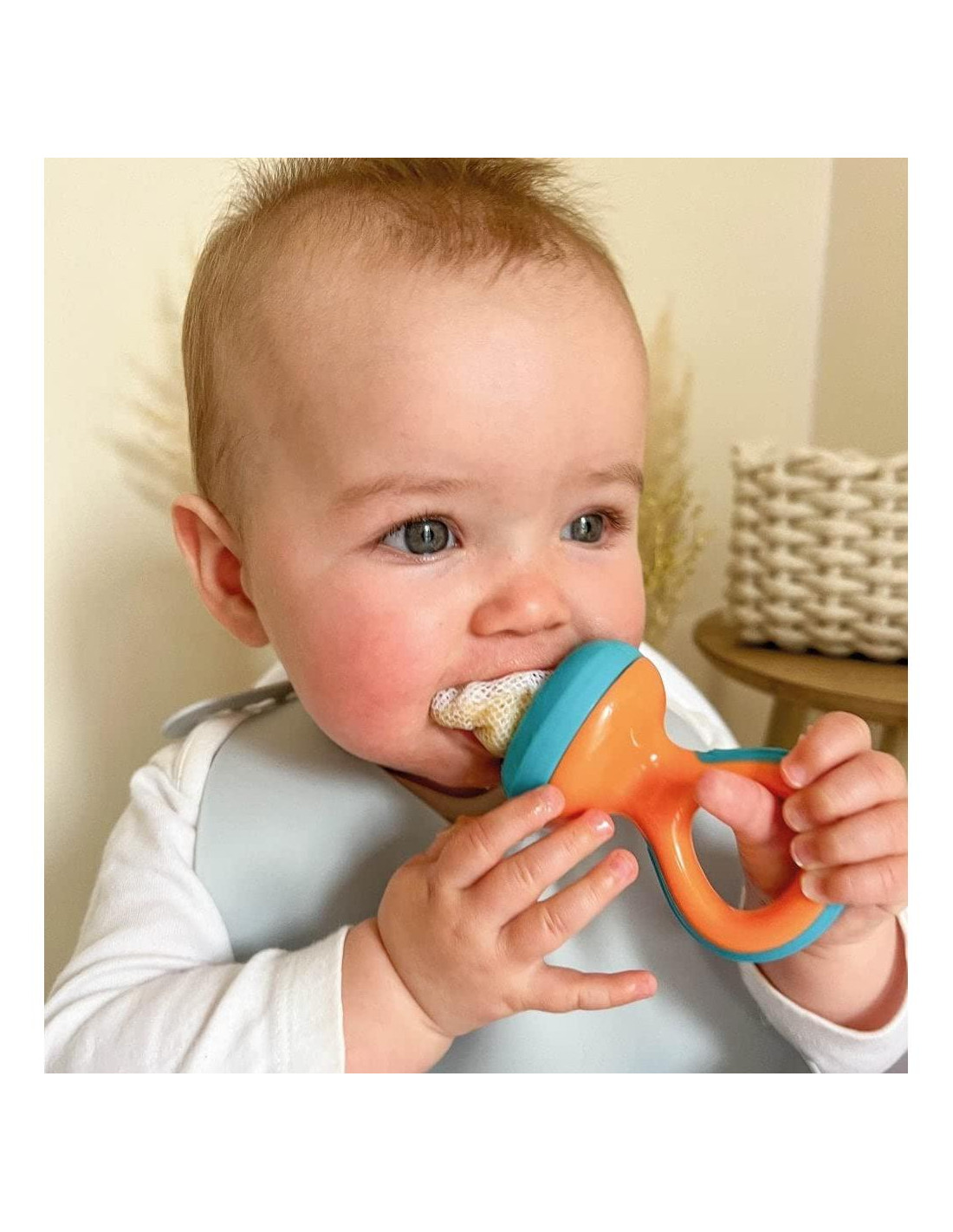 - Excelente manera de introducir alimentos sólidos blandos como frutas. Además, cuando el bebé está en dentición, llénelo con hielo o frutas congeladas para aliviar las encías adoloridas del bebé.
